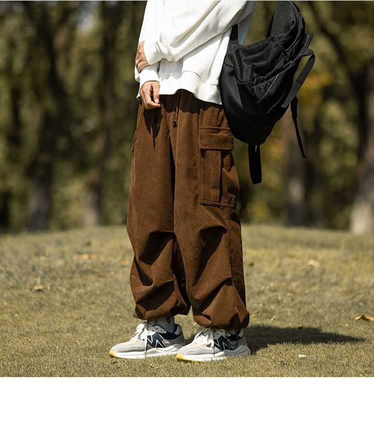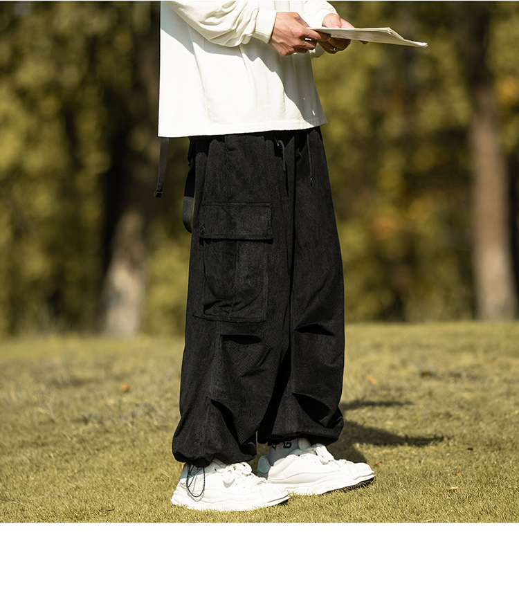코듀로이 바지 남성 애호가 캐주얼 카키 바지 패션 브랜드 가을과 겨울 스트레이트 와이드 레그 팬츠