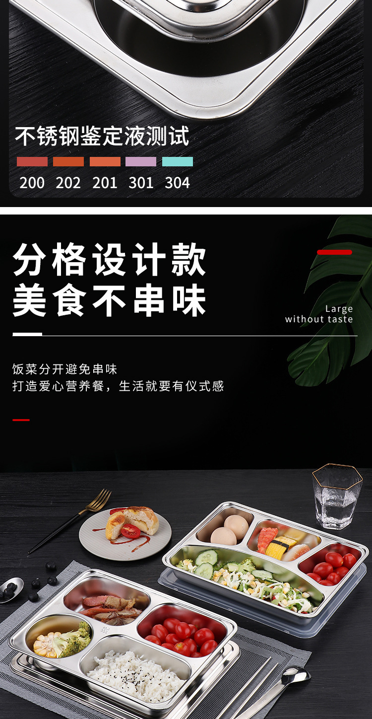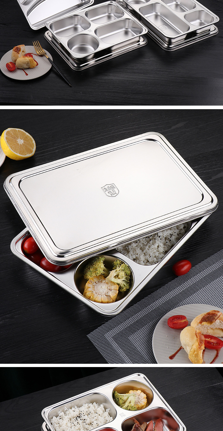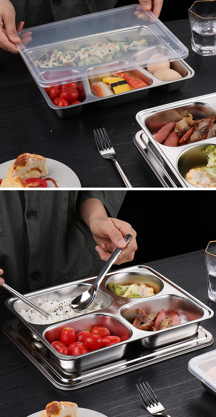 식품 등급 304 스테인레스 스틸 확대 및 심화 된 성인 사무실 근로자 도시락 뚜껑 분할 디너 플레이트 매점 디너 플레이트
