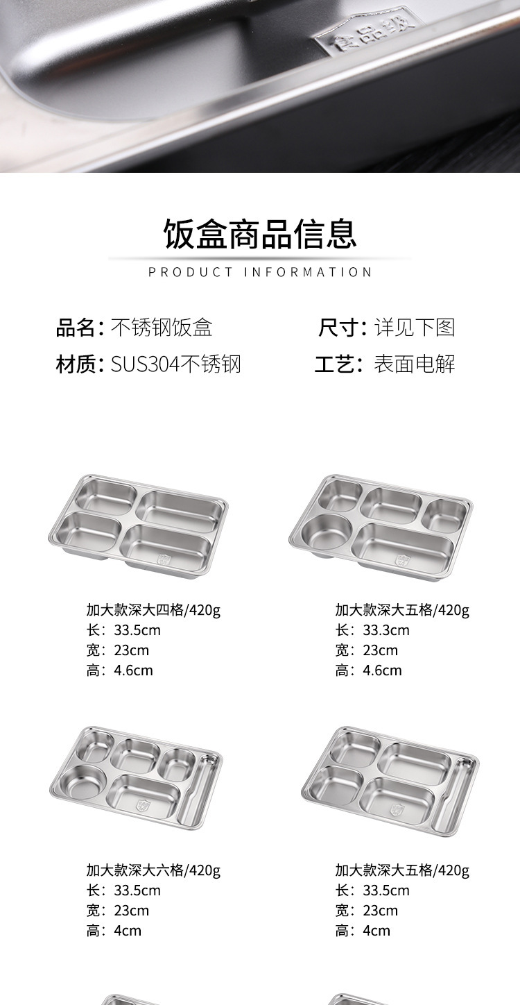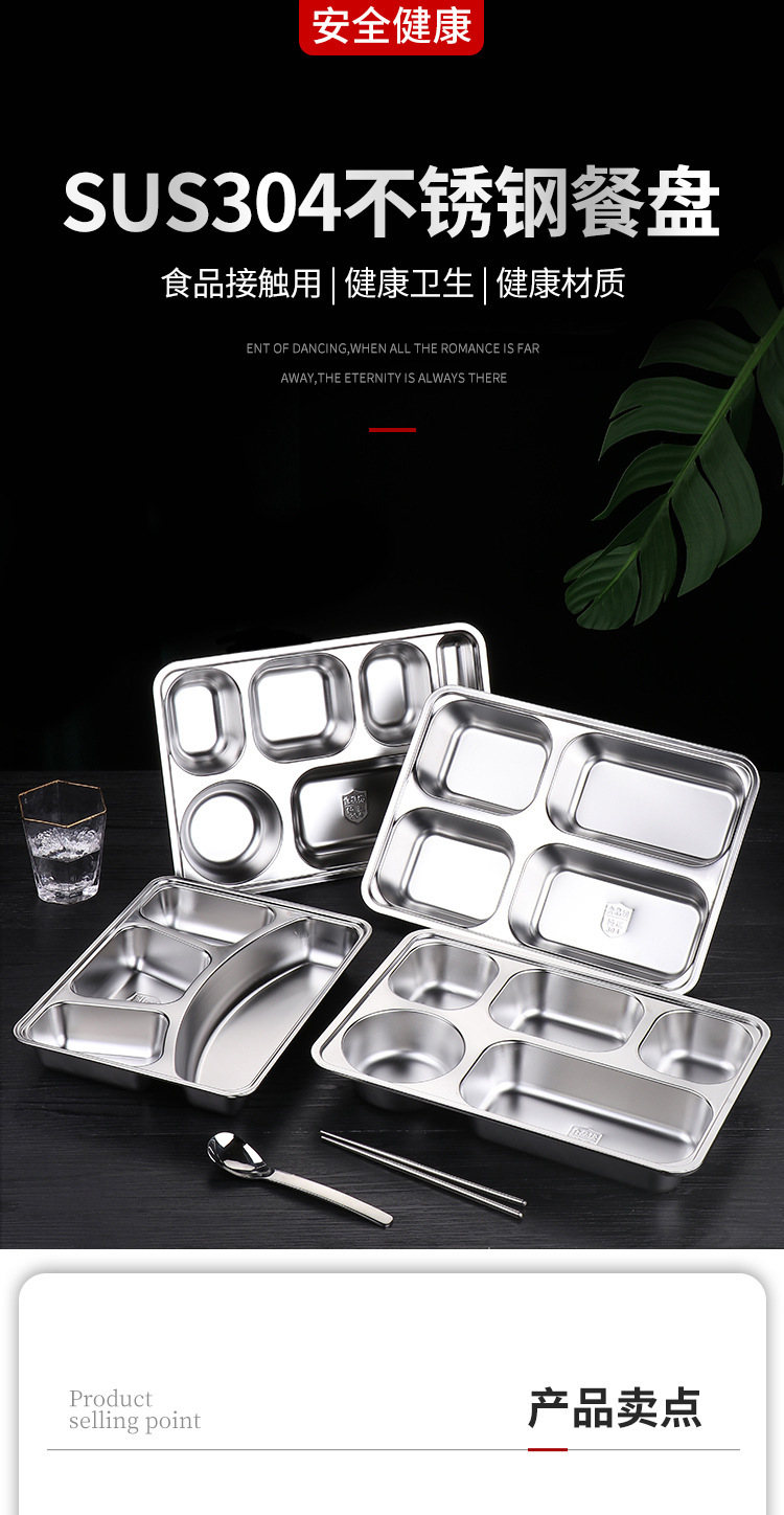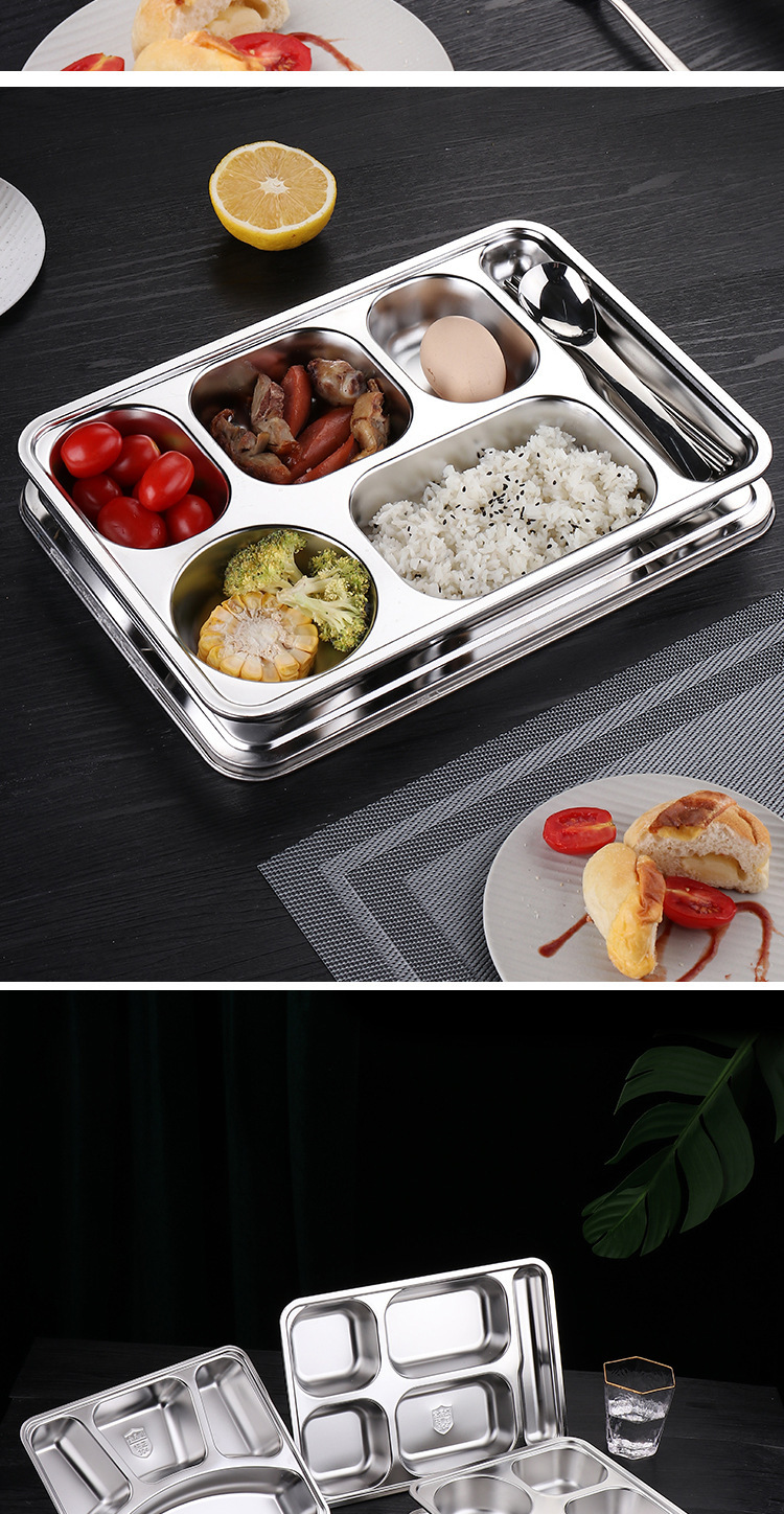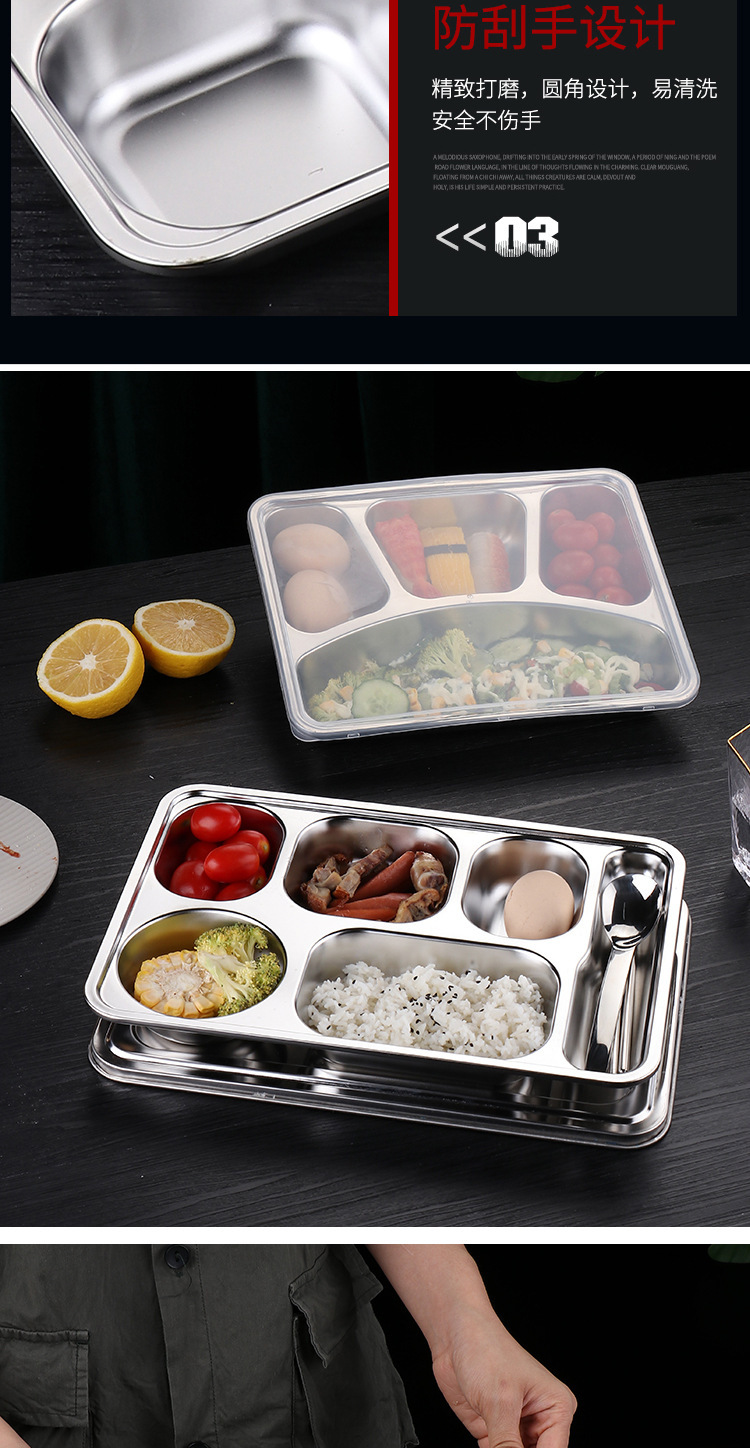 식품 등급 304 스테인레스 스틸 확대 및 심화 된 성인 사무실 근로자 도시락 뚜껑 분할 디너 플레이트 매점 디너 플레이트