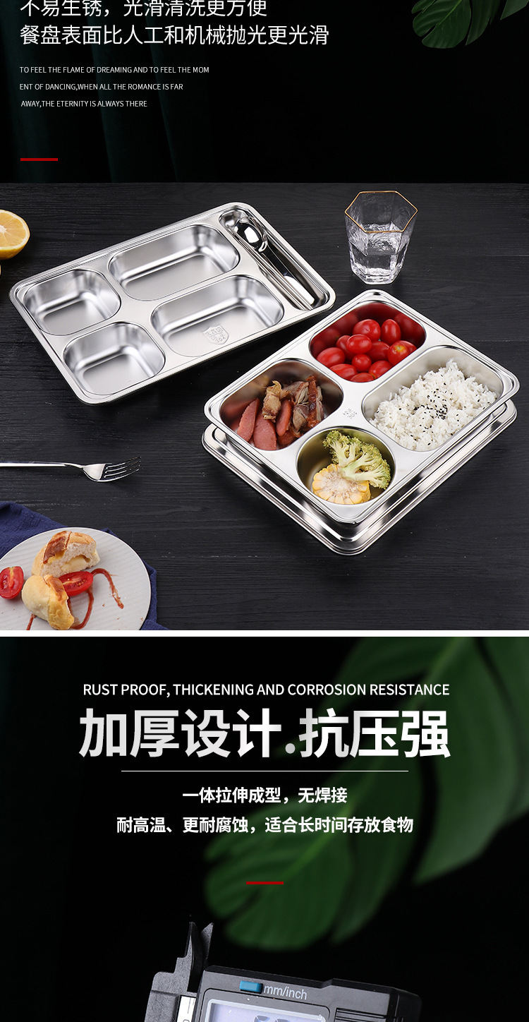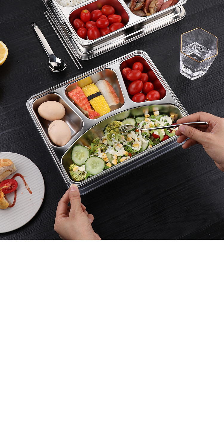 식품 등급 304 스테인레스 스틸 확대 및 심화 된 성인 사무실 근로자 도시락 뚜껑 분할 디너 플레이트 매점 디너 플레이트스토어 가기