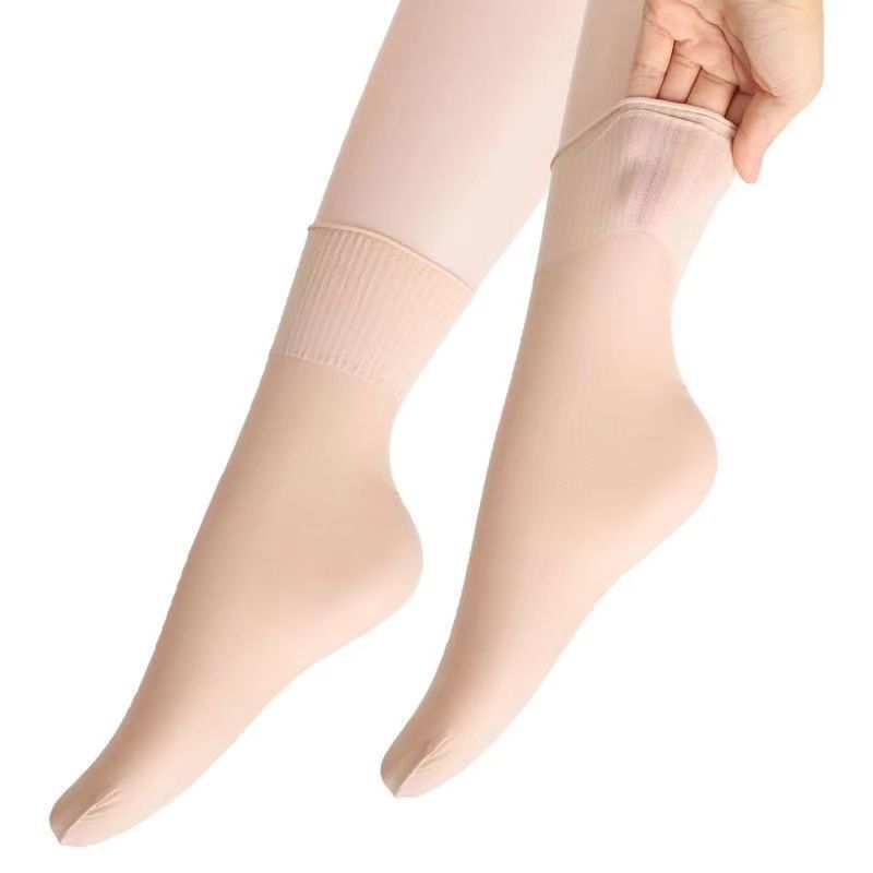 Zhuji 양말 봄과 여름 제품은 가장자리 주름진 여성용 긴 스타킹 안티 후크 실크 슈퍼 소프트 마스크가 발을 목을 졸라 지 않음을 보여줍니다.스토어 가기
