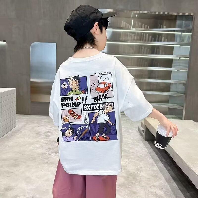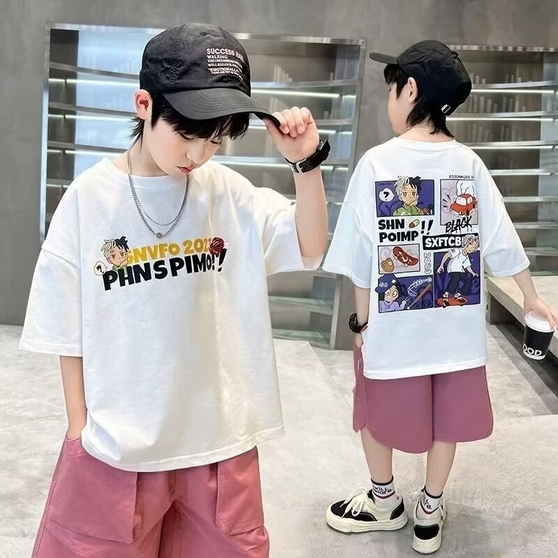 남아 반팔 티셔츠 여름옷 2025 신상 아동 여름 스타일 화이트 트렌디 브랜드 상의 7세 이상 아동복 12세 아동복스토어 가기