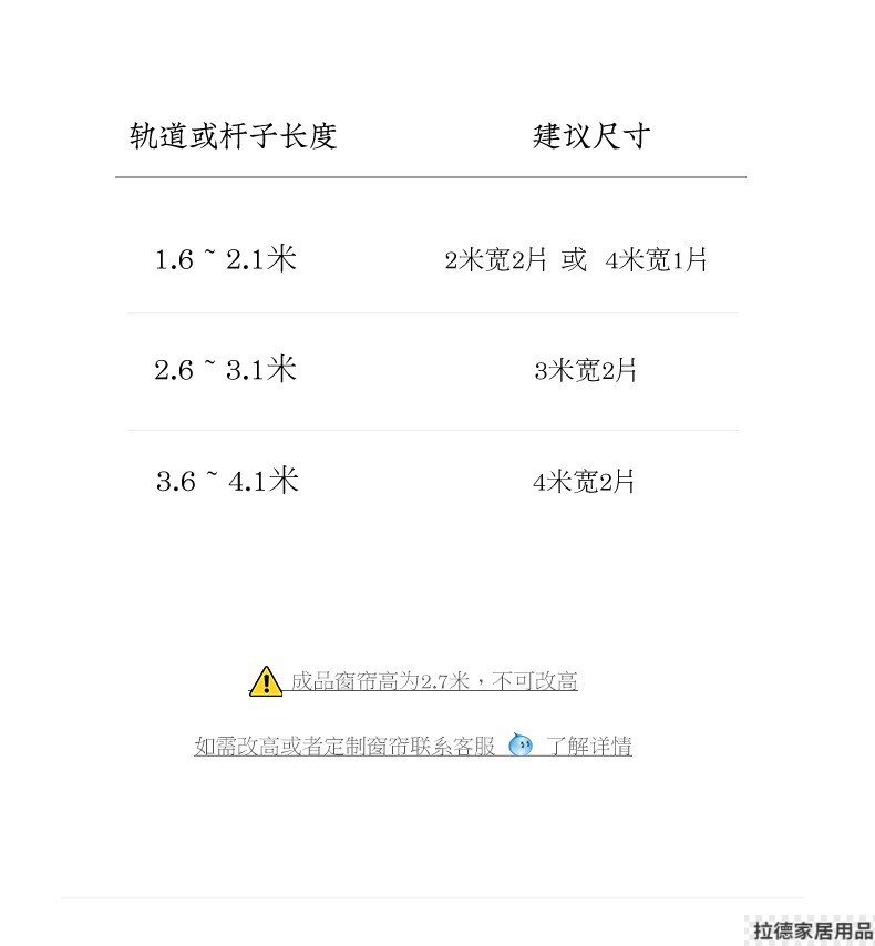 • 커튼 높이가 초과되었습니다. 2.7m 고객 서비스에 문의하세요.