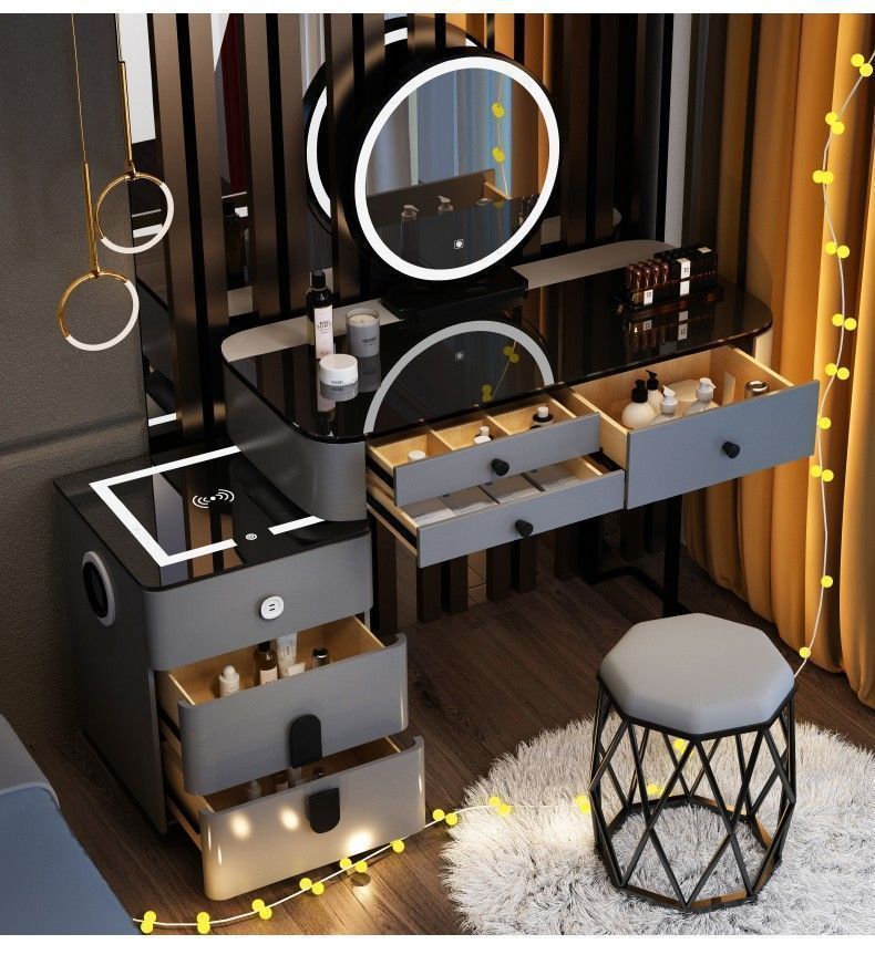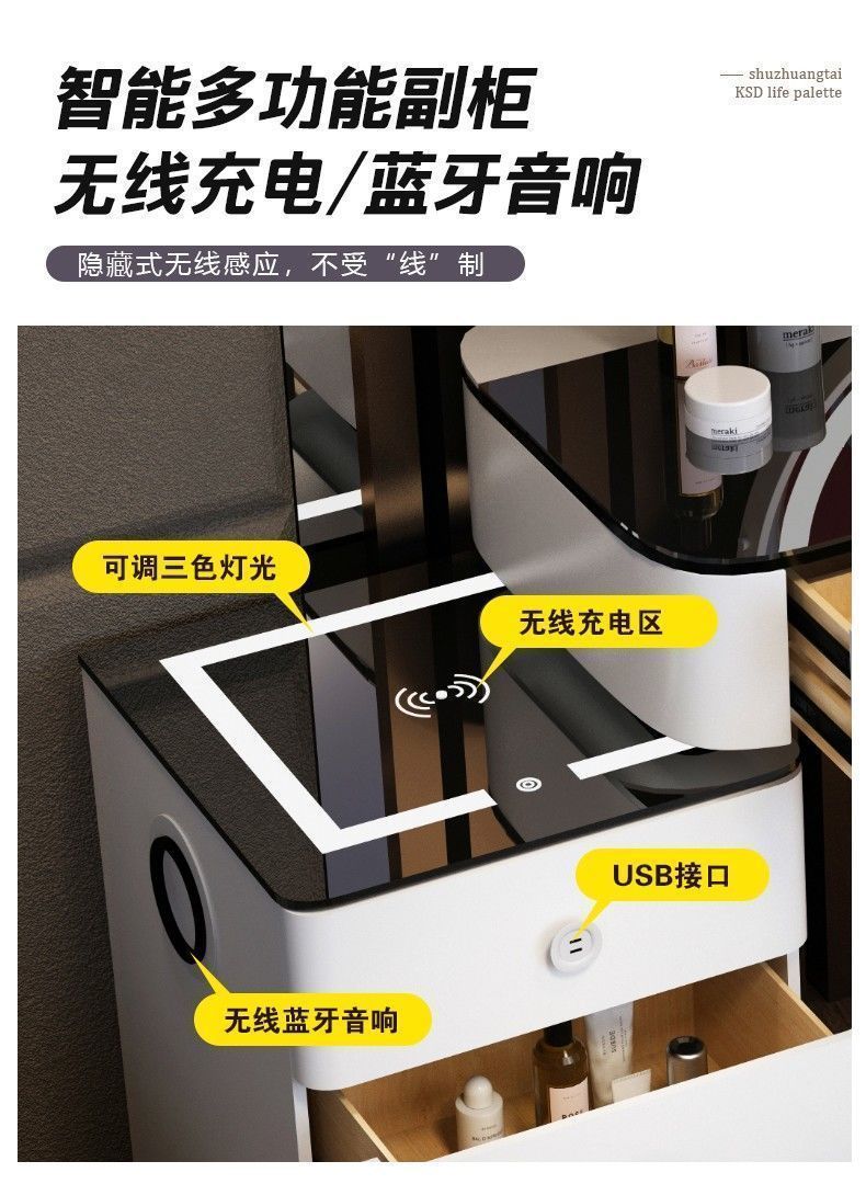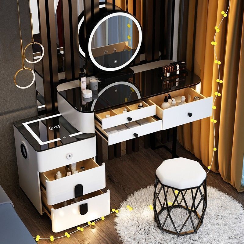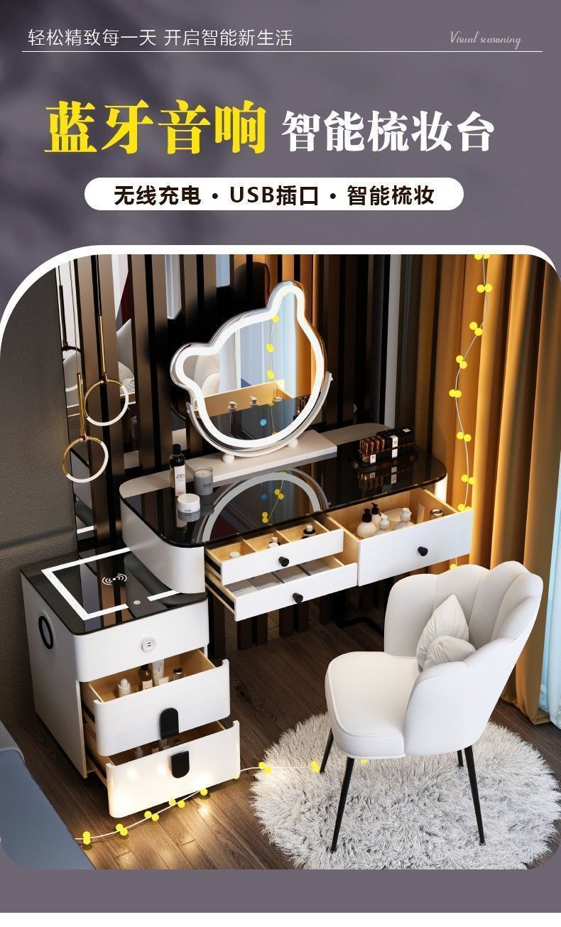 노르딕 다기능 스마트 드레싱 테이블 무선 충전 블루투스 오디오 침실 현대 간단한 빛 럭셔리 메이크업 테이블스토어 가기