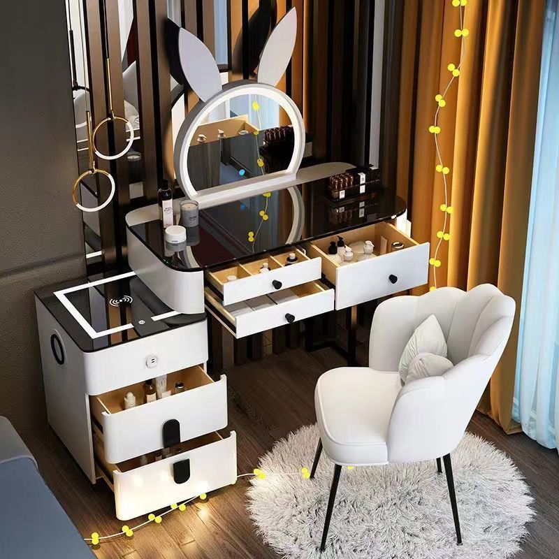 • [화이트, 블랙] 80.1 테이블 + 스마트 캐비닛 토끼 거울 + 꽃잎 의자