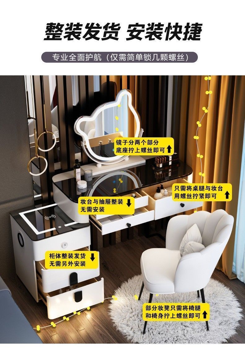 노르딕 다기능 스마트 드레싱 테이블 무선 충전 블루투스 오디오 침실 현대 간단한 빛 럭셔리 메이크업 테이블