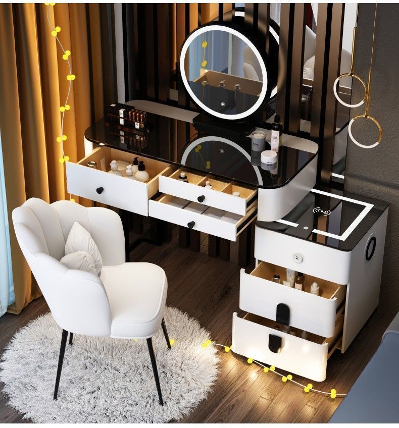 • [화이트, 블랙] 80.1 테이블 + 스마트 캐비닛 + 원형 거울 + 새둥지 스툴