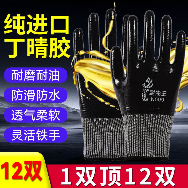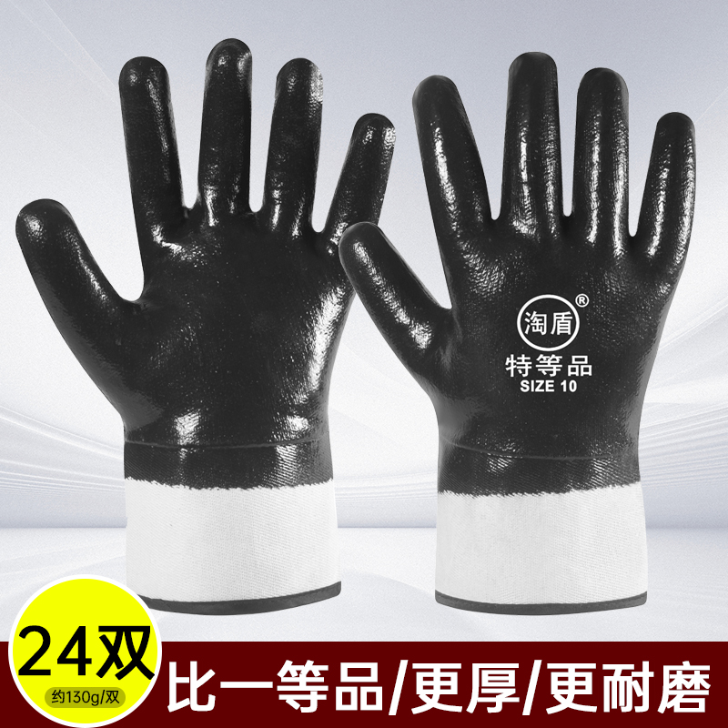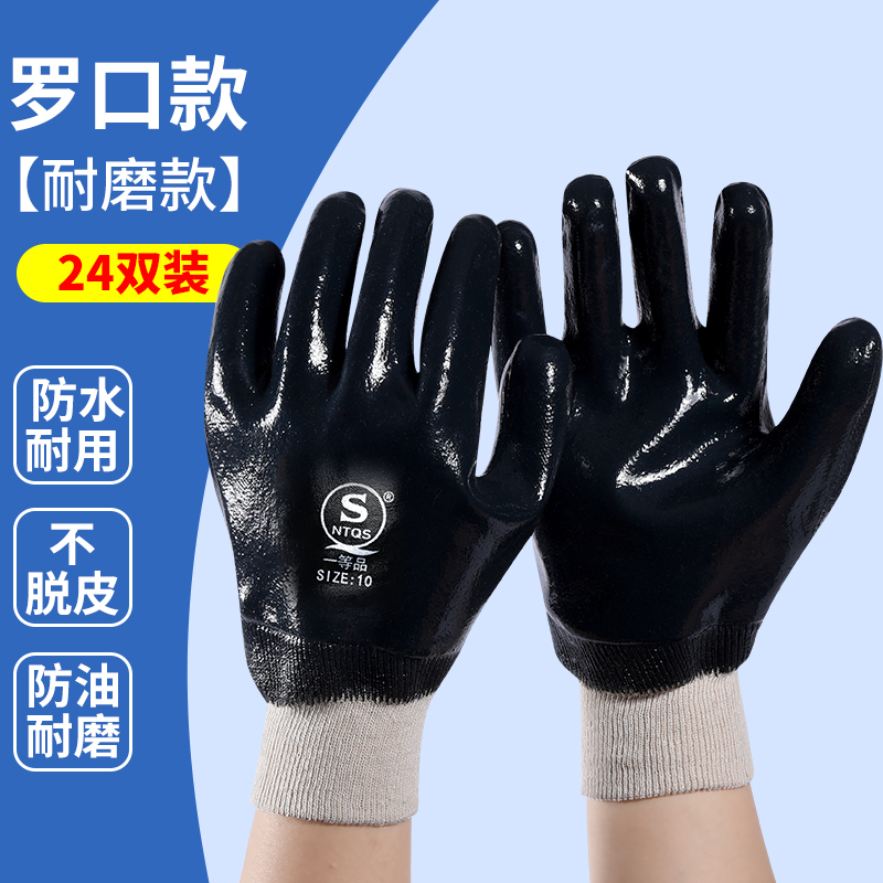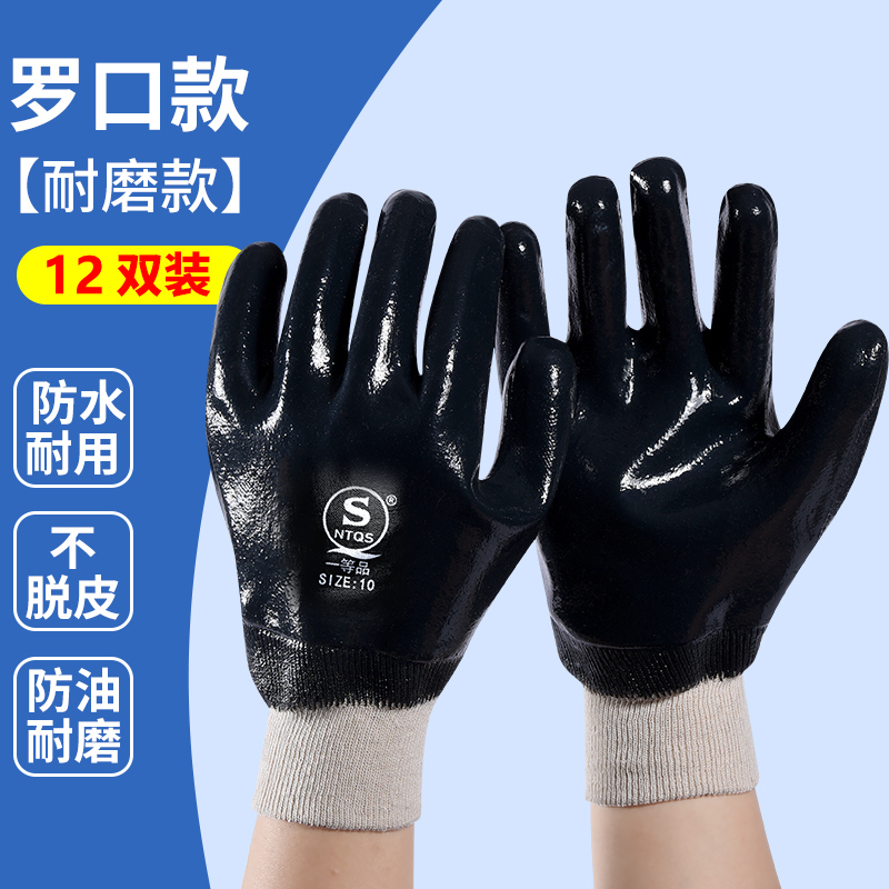 . 장갑 노동 보호 고무 전체 고무 캔버스 산업 내마모성 내유성 오일 방지 작업 손 방수 미끄럼 방지 니트릴스토어 가기