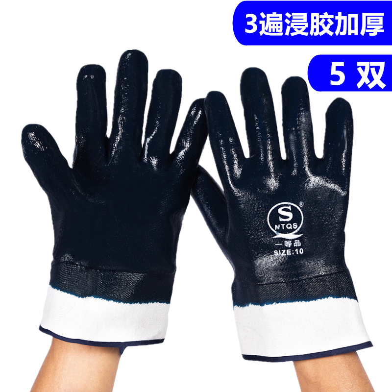 . 장갑 노동 보호 고무 전체 고무 캔버스 산업 내마모성 내유성 오일 방지 작업 손 방수 미끄럼 방지 니트릴