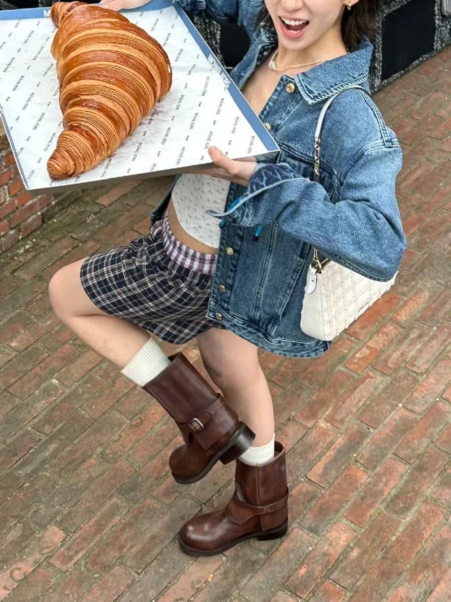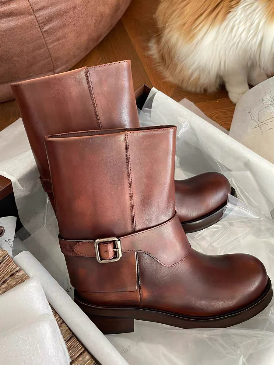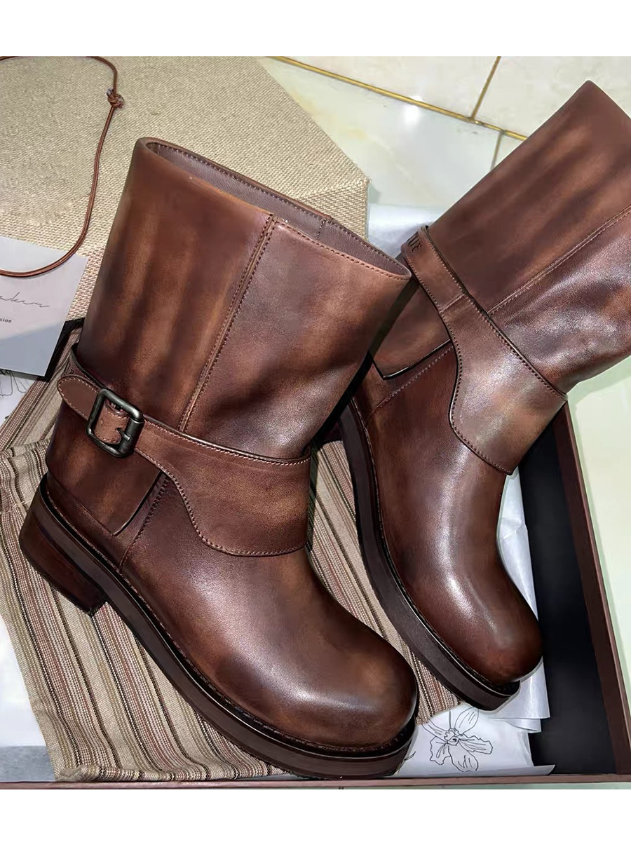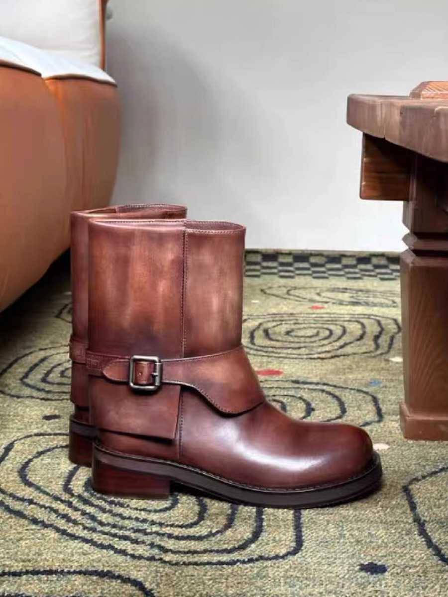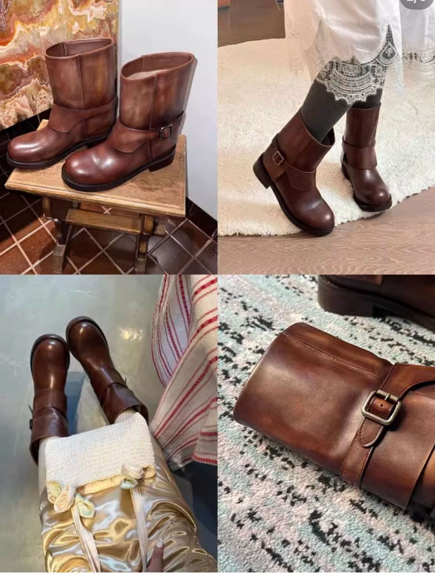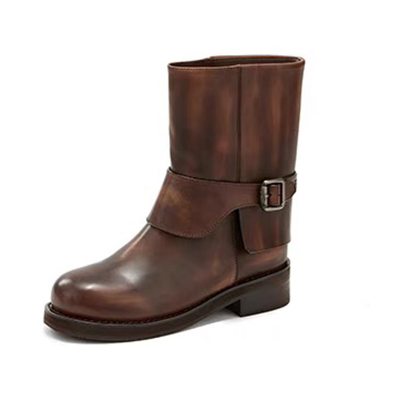 Cowhide Edition ~ 컬러 광택 첼시 부츠 여성용 올드 올 매치 스모크 부츠 웨스턴 픽 힐 미드 배럴 카우보이 부츠 나이트 부츠스토어 가기
