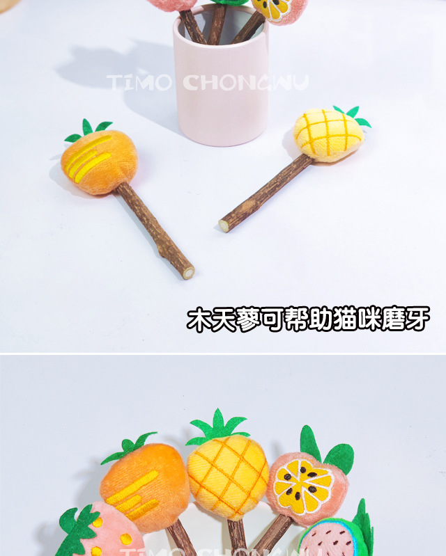 과일 나무 Tianyu 시리즈 재미 있은 고양이 스틱 플러시 젖니가 남 스틱 나무 고양이 자기 즐거움 치아 청소 지루함 장난감 퍼즐
