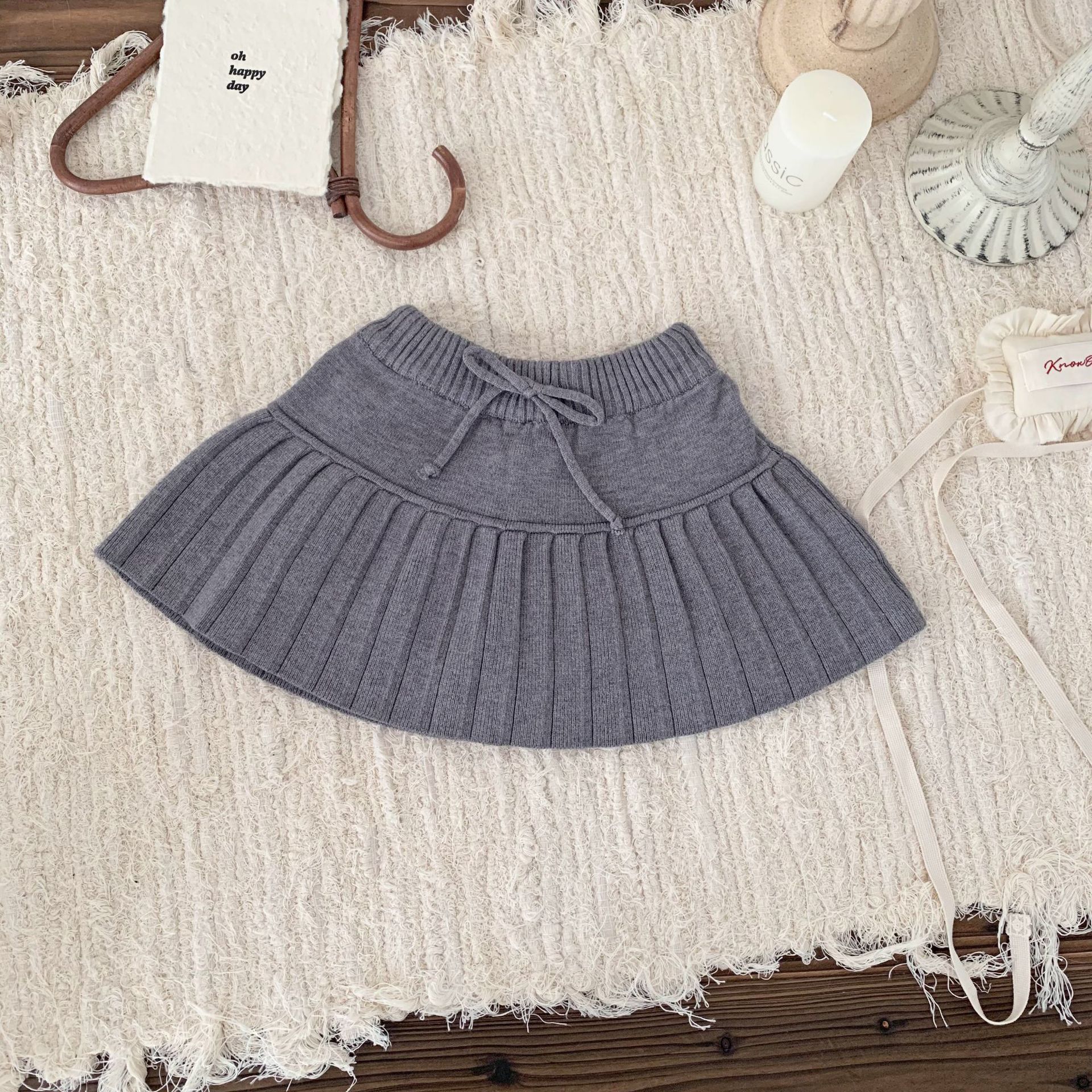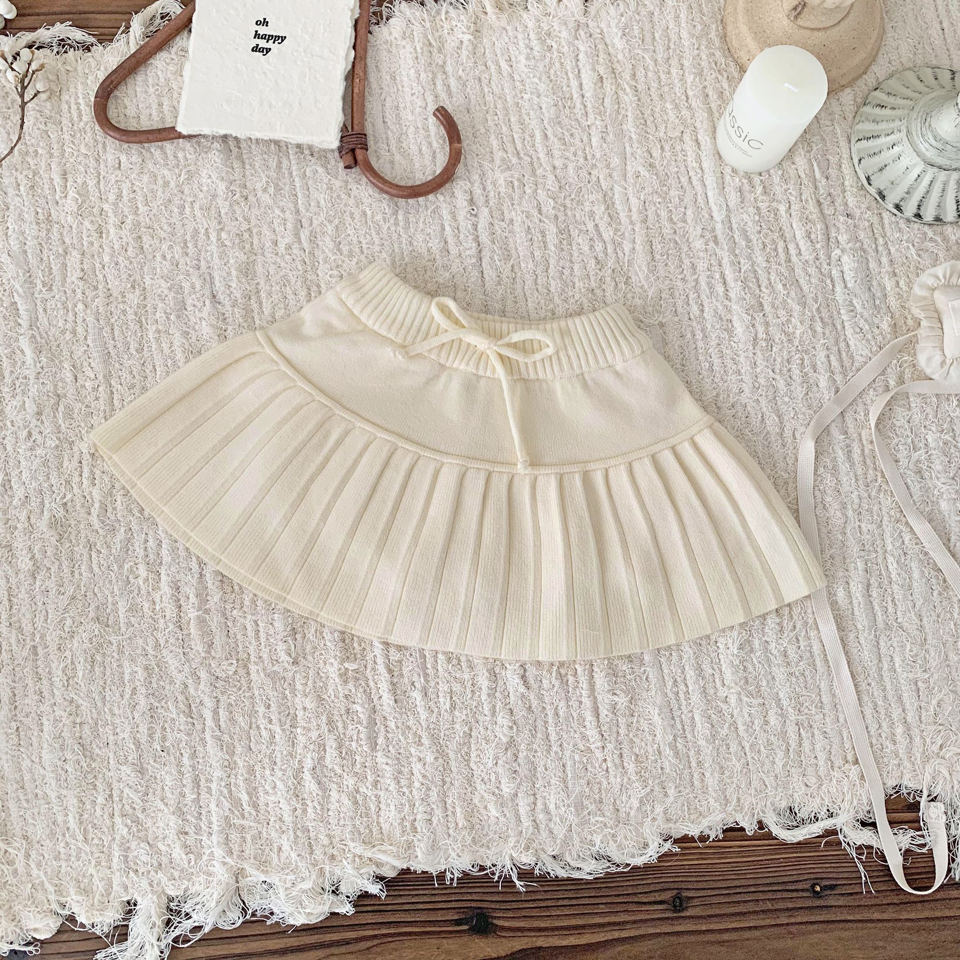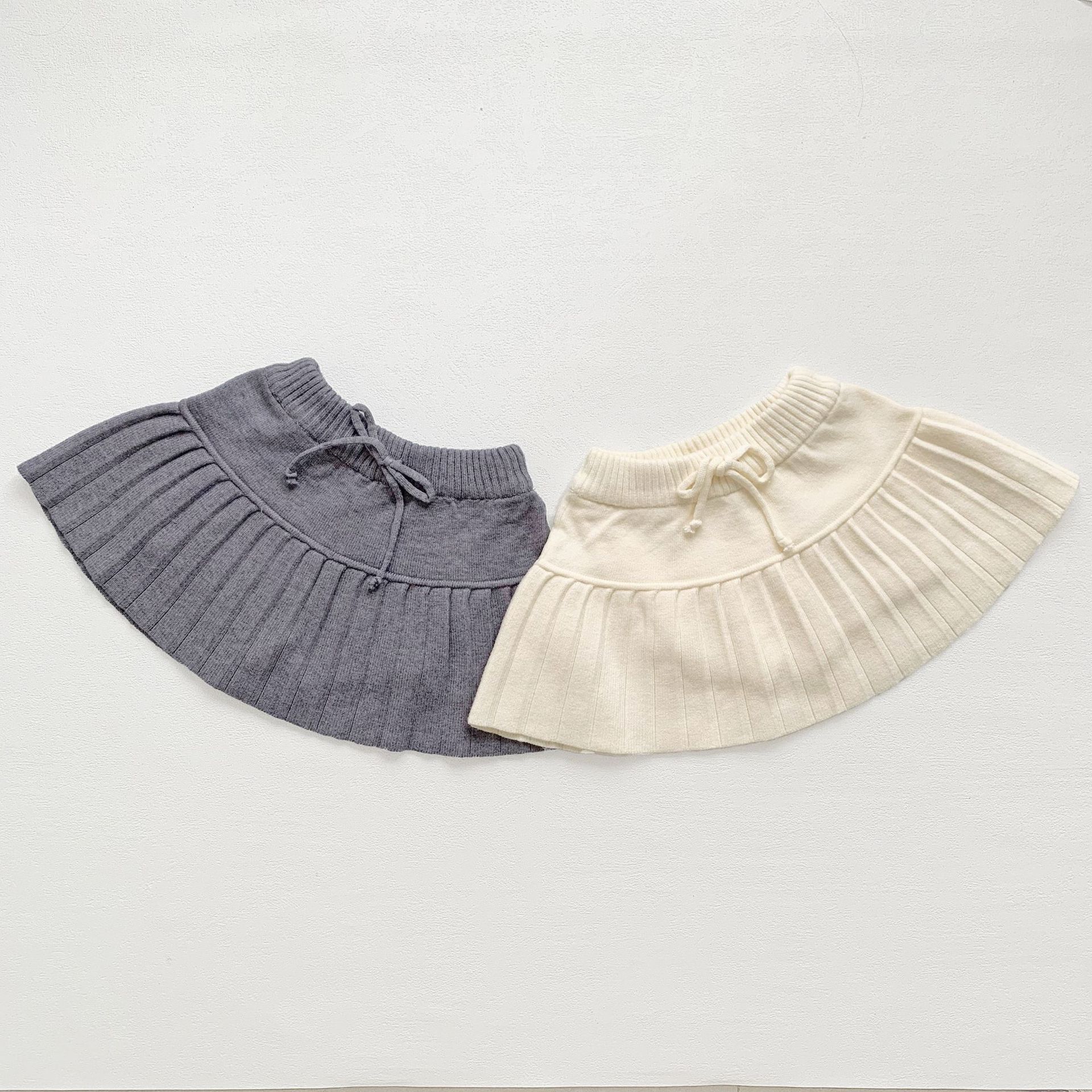 Cutemily 가을과 겨울 아기 소녀 니트 반바지 팬 스커트 여성 보물 주름 가짜 투피스 대학 스타일 연꽃 잎 바지 치마