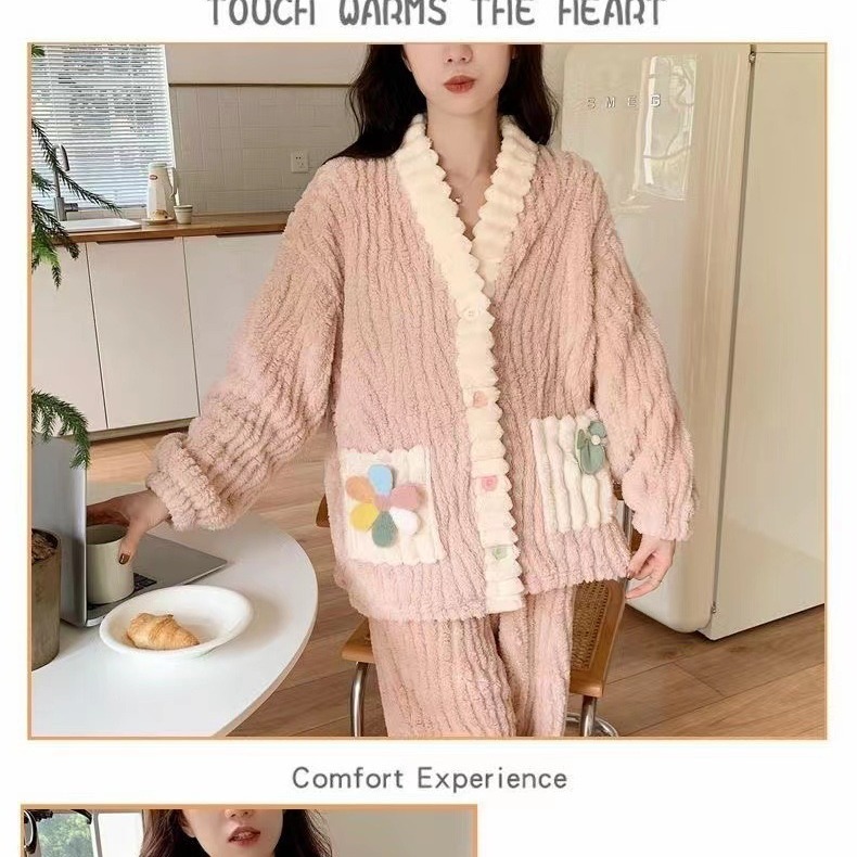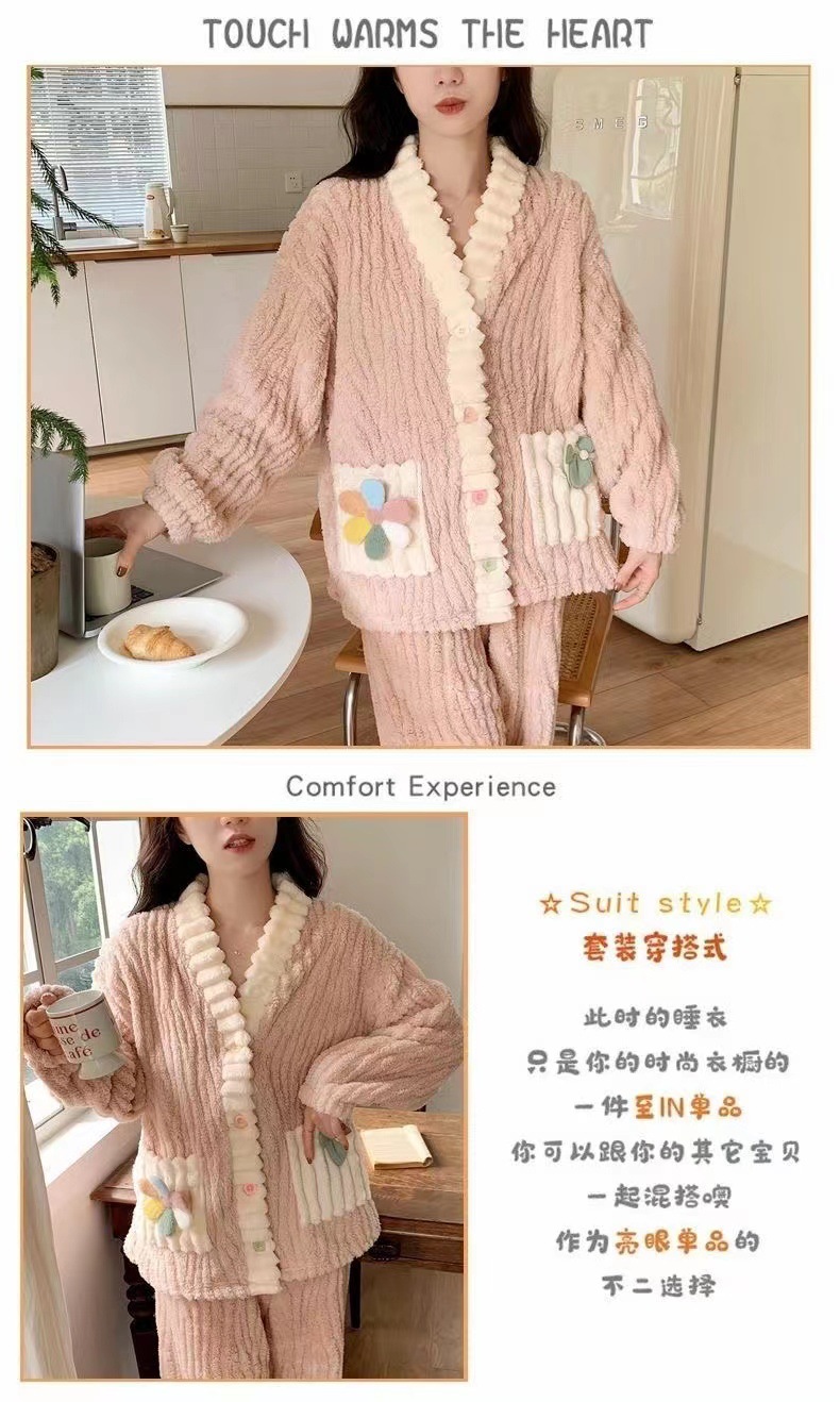 2024 새로운 산호 양털 파자마 겨울 여성 기모 두꺼운 플란넬 가을과 겨울 홈웨어 스위트 아우터웨어스토어 가기