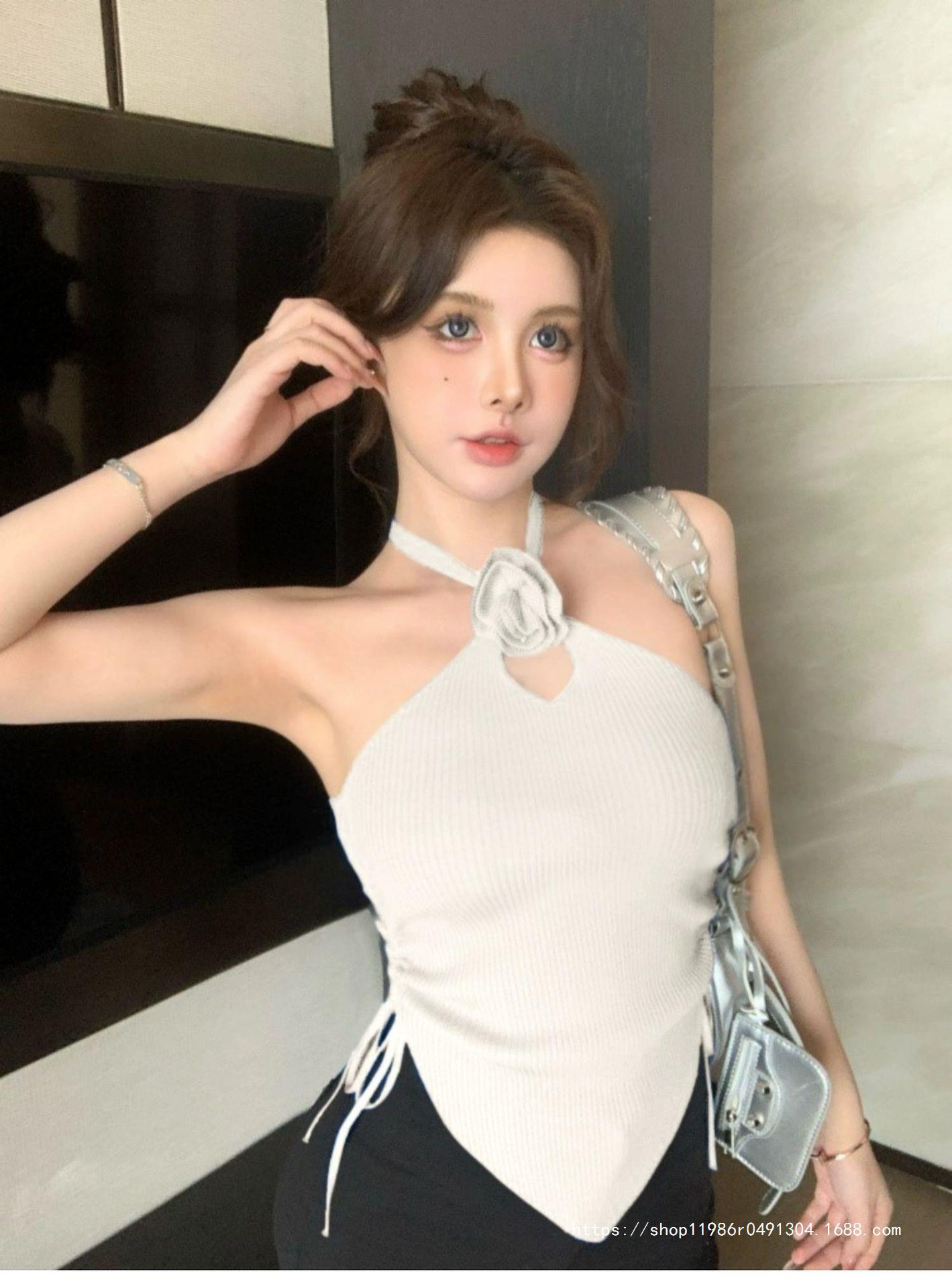 겉옷 여름 태국 달콤한 스파이스 소녀 섹시한 끈이없는 탑 불규칙한 3 차원 꽃 목 스트랩 여성을위한 작은 조끼스토어 가기