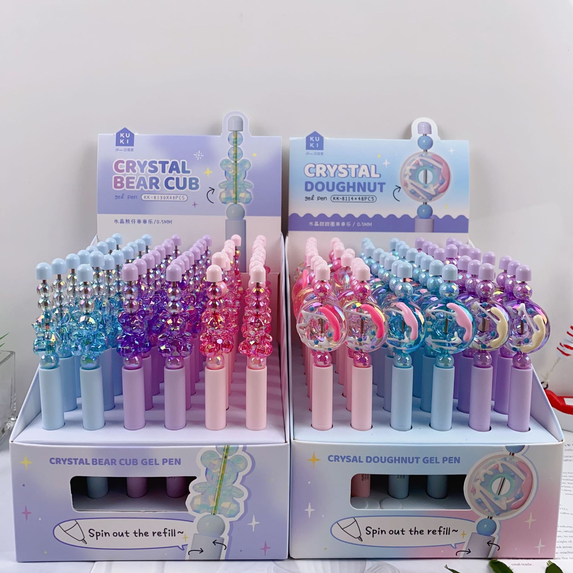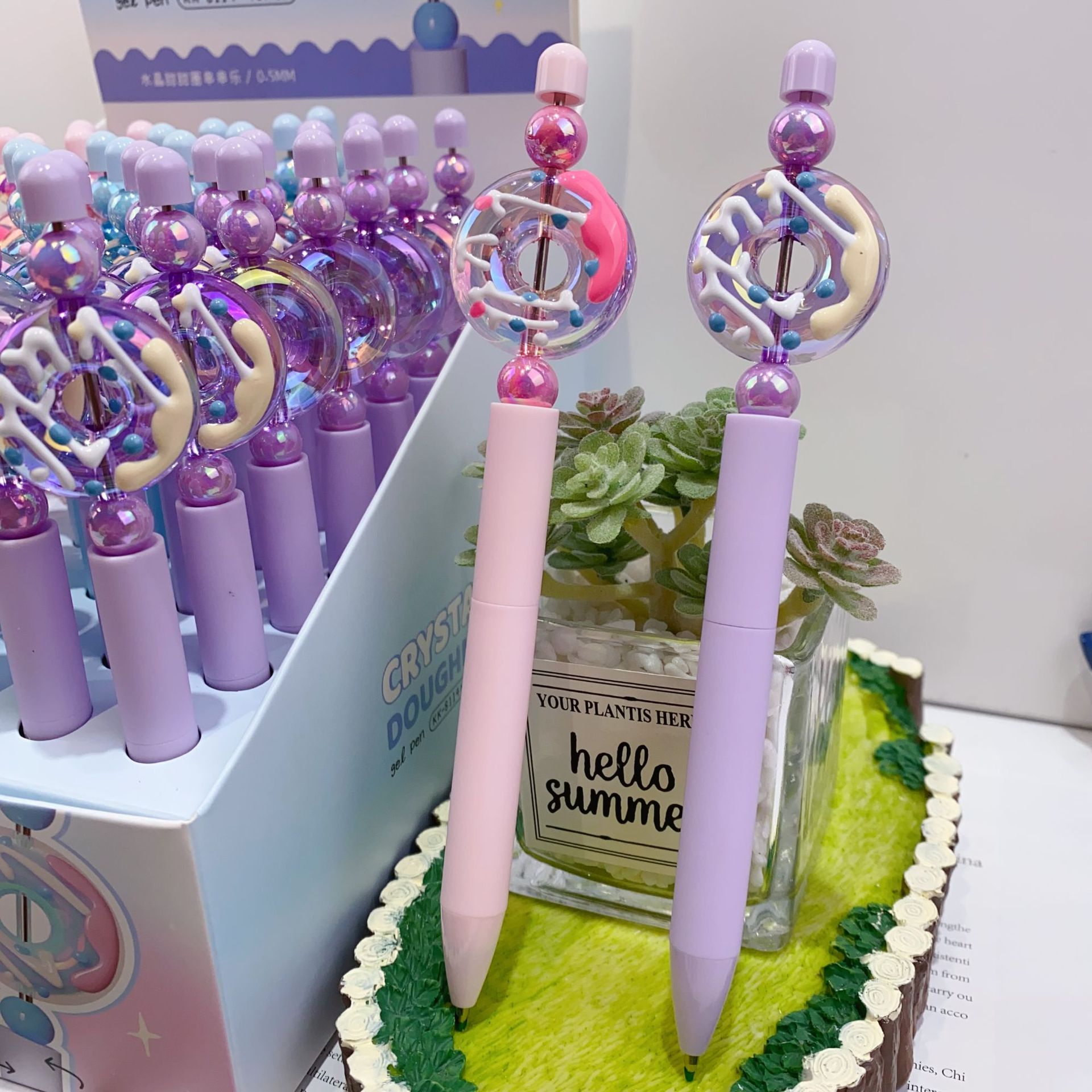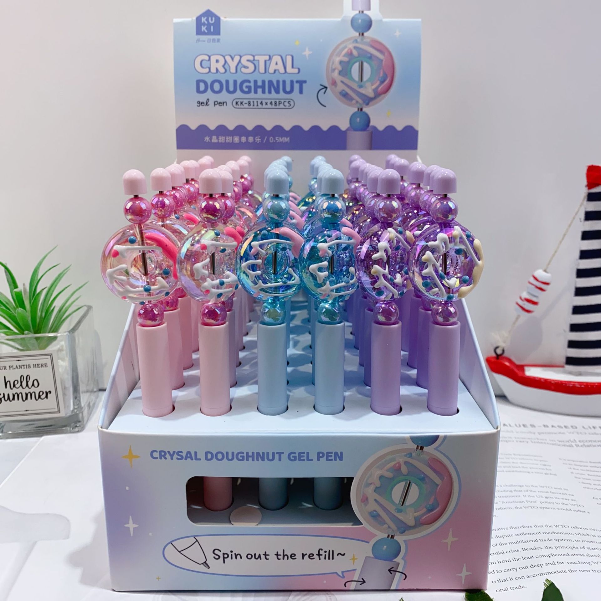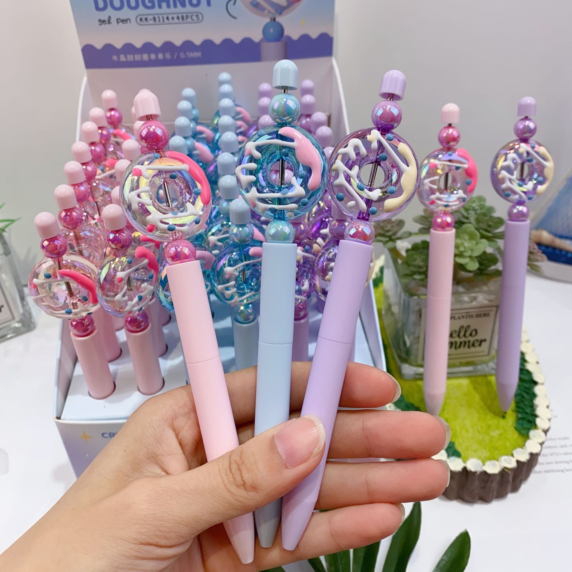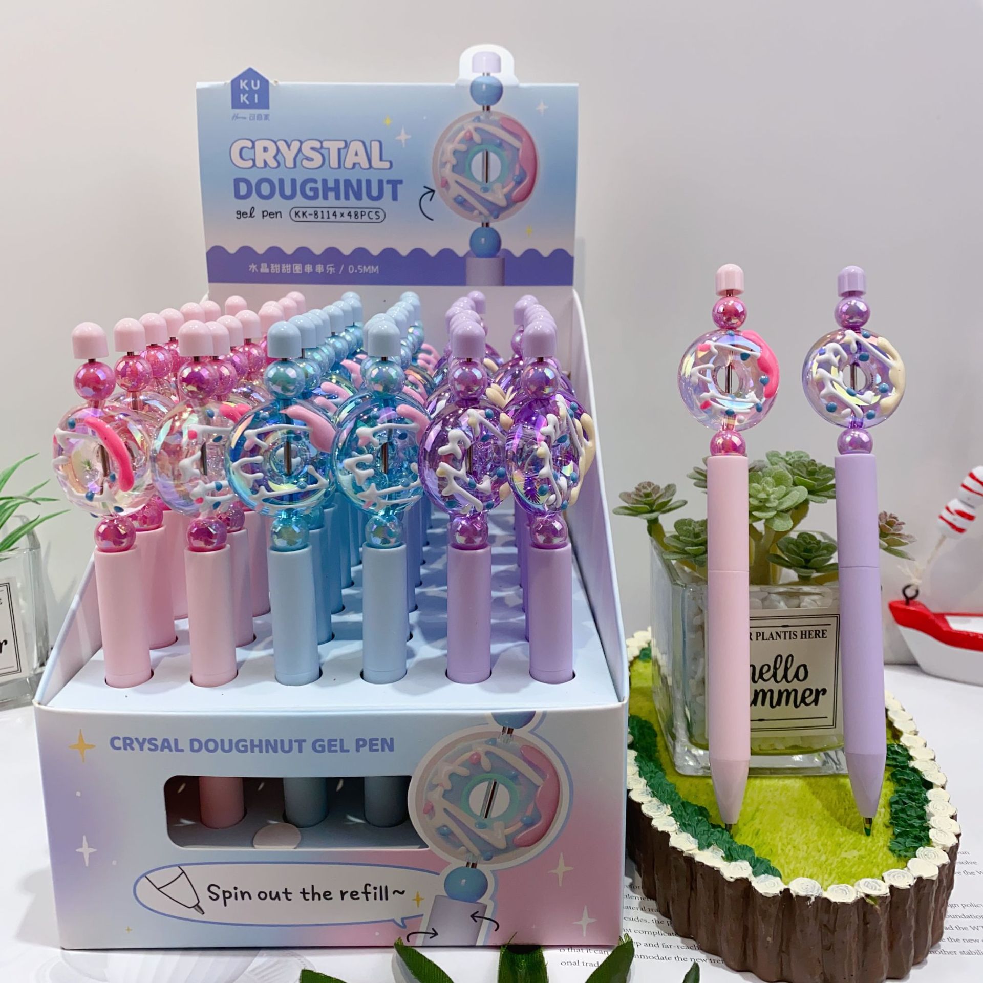 Keqi 새로운 크리스탈 도넛 문자열 음악 젤 펜 귀여운 무료 DIY 멩콩 문자열 시그니처 펜스토어 가기