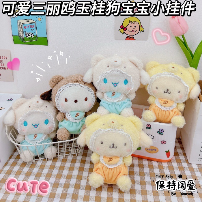 Sanlio 아기 스카프 Yugui 개 두려워 개 키 체인 펜던트 창조적 인 봉제 푸딩 개 Schoolbag 매달린 장식품스토어 가기