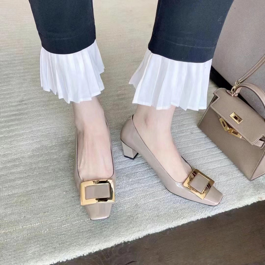 스퀘어 헤드 두꺼운 힐 하이힐 높이 증가 패션 레트로 간단한 스타일 우아한 매일 통근 얕은 입 통기성 편안한