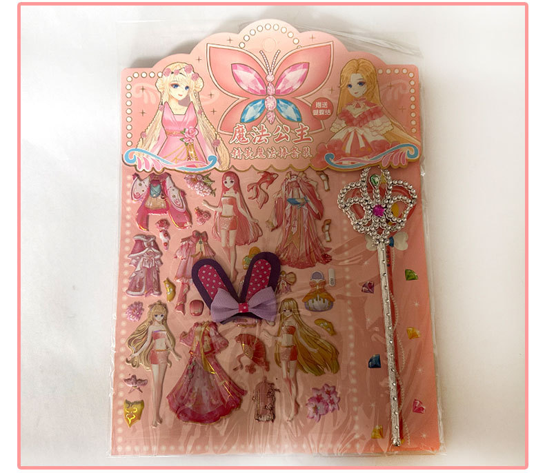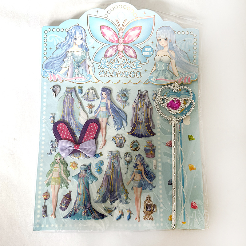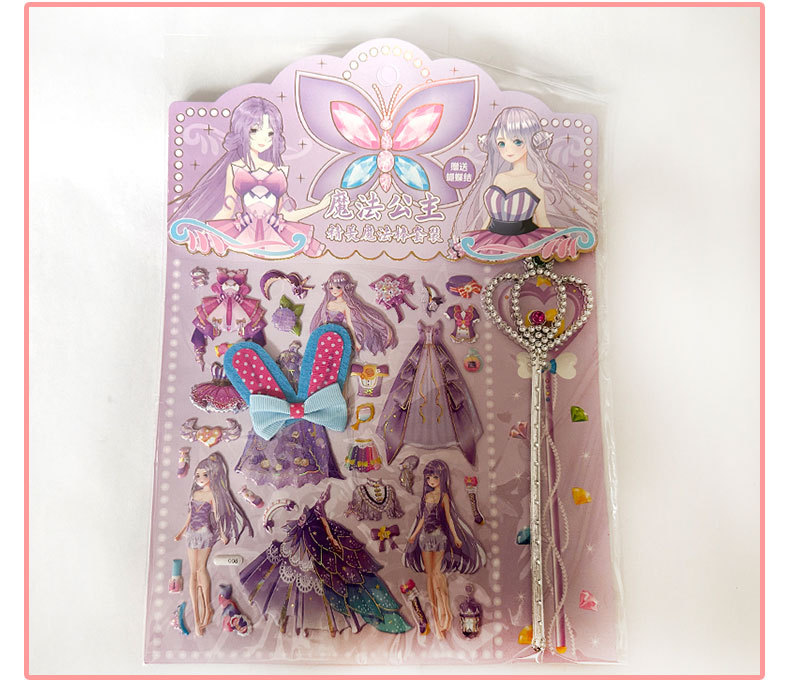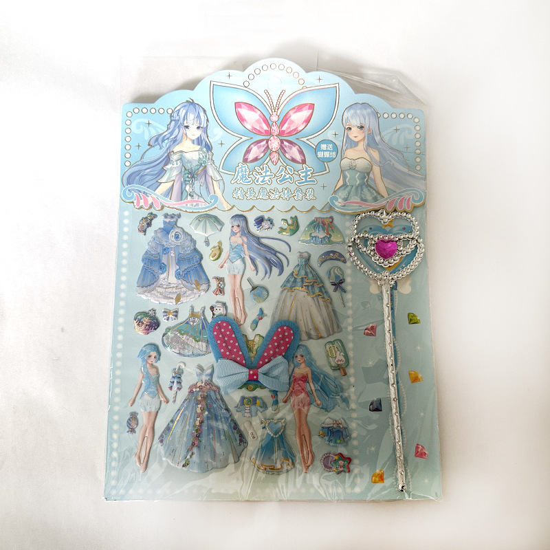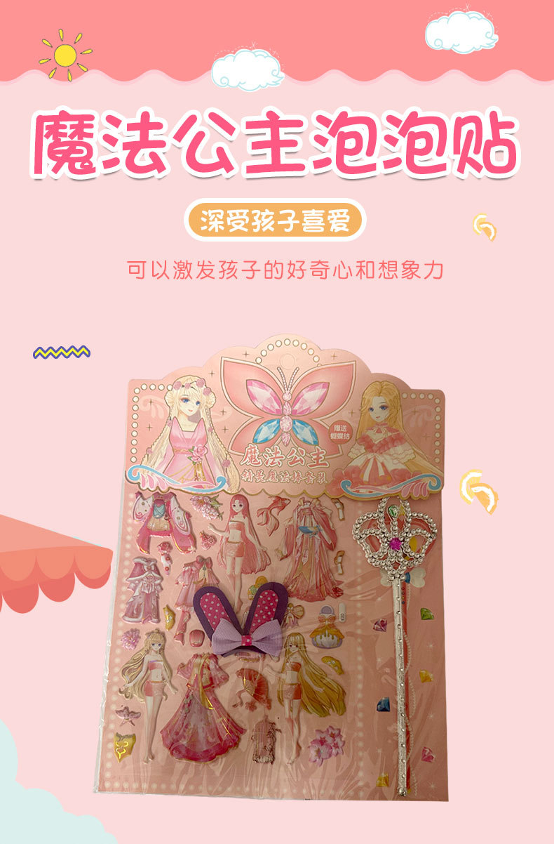 공주 원피스 업 쇼 더블 레이어 3D 스폰지 버블 스티커 어린이 장난감 작은 소녀 셀프 페이스트 스티커 만화스토어 가기