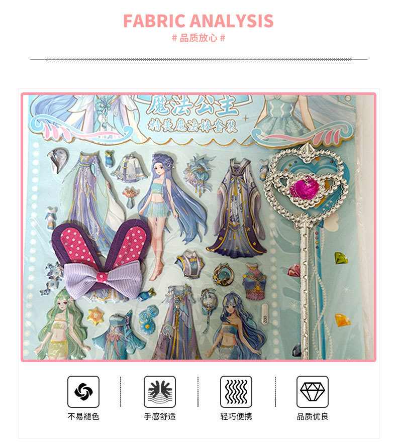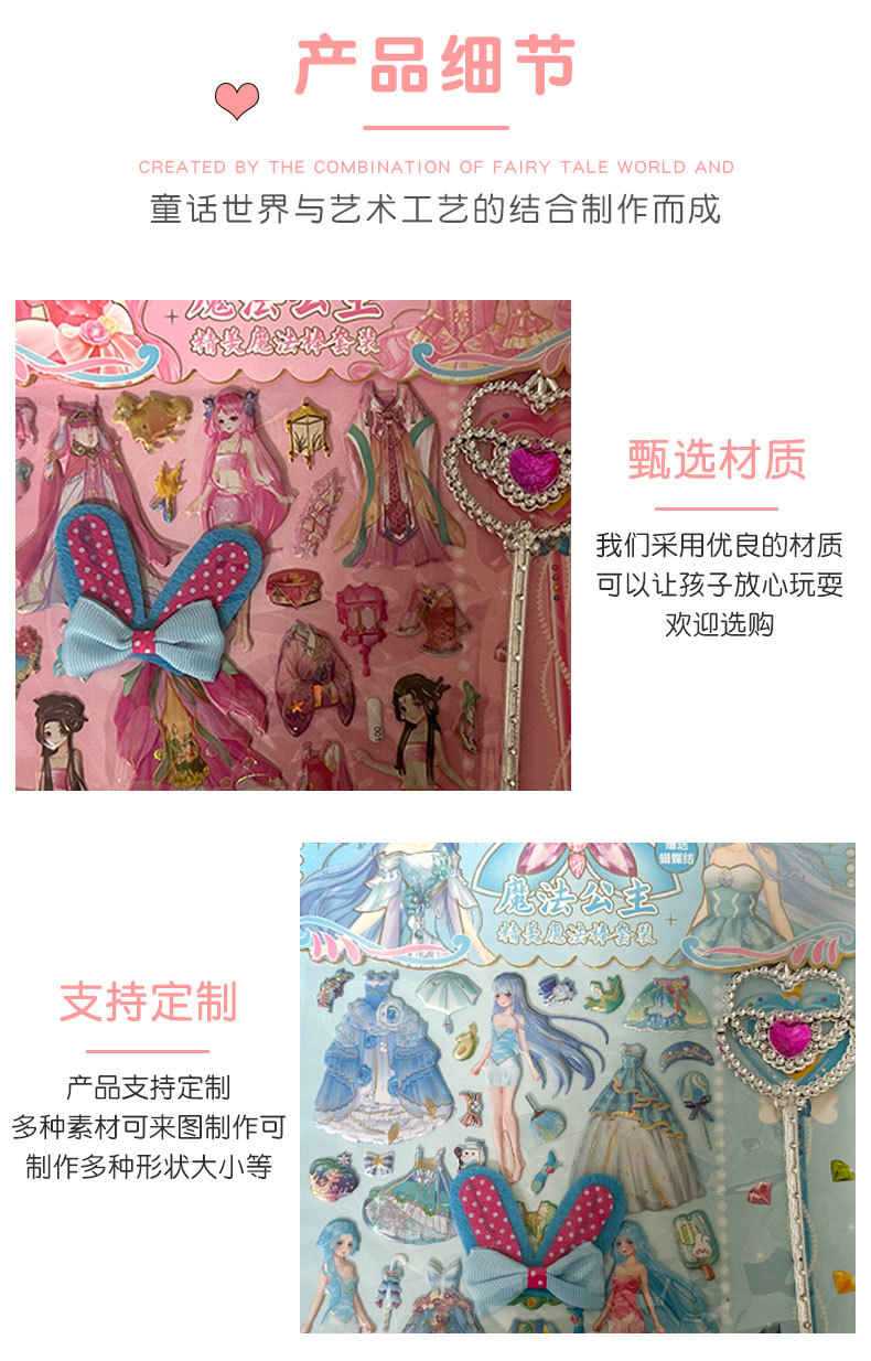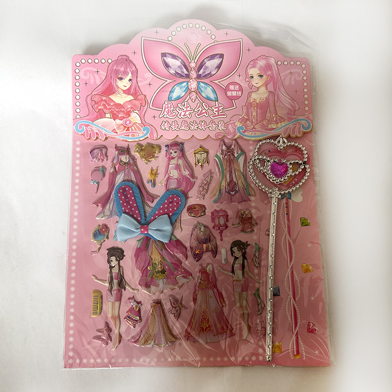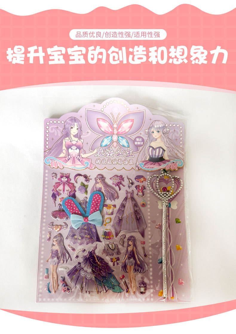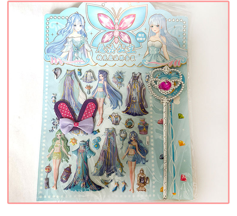 공주 원피스 업 쇼 더블 레이어 3D 스폰지 버블 스티커 어린이 장난감 작은 소녀 셀프 페이스트 스티커 만화스토어 가기