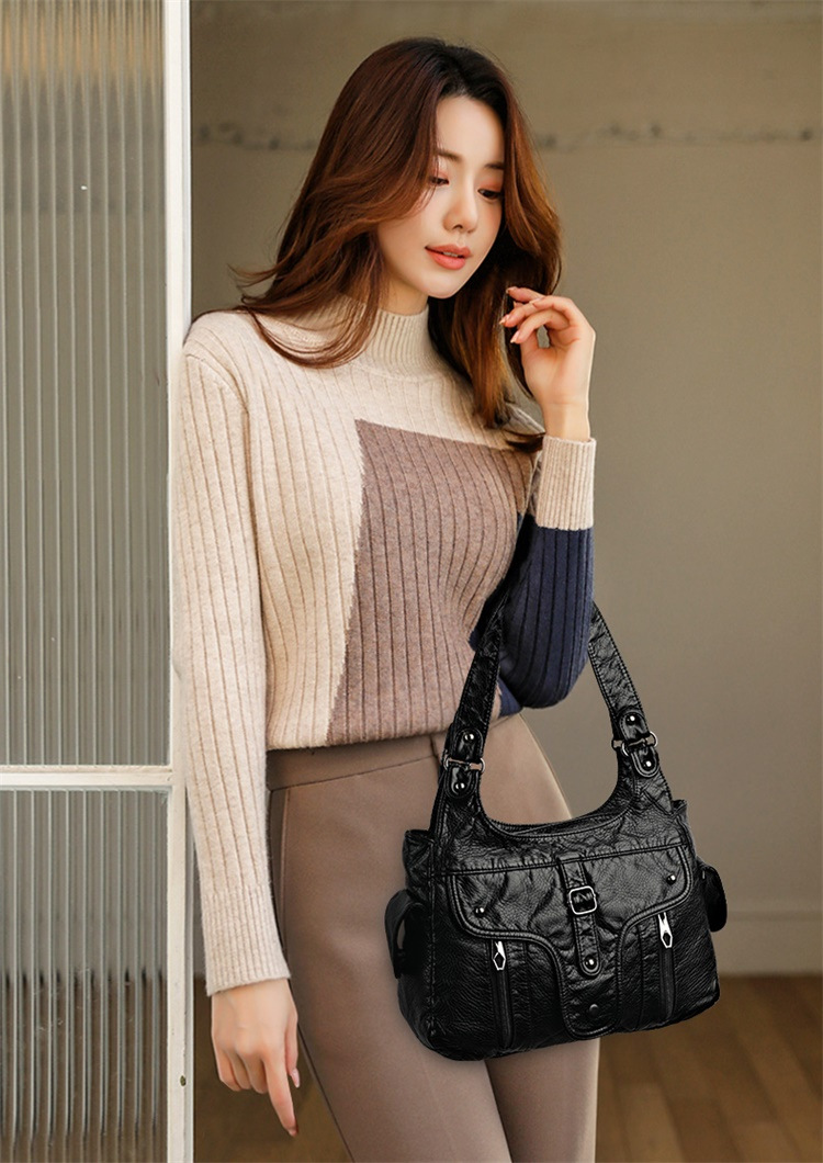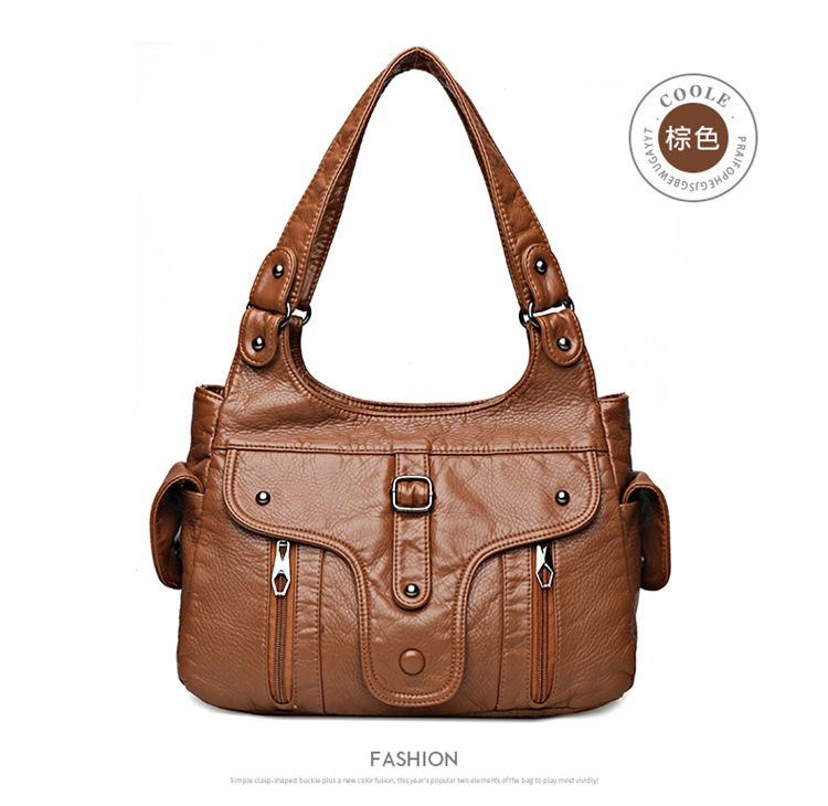 국경 간 어깨 가방 언더암 가방 핸드 백 국경 간 중년 및 노인 여성 가방 대용량 워시 가죽스토어 가기