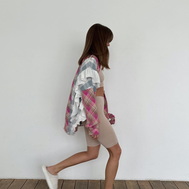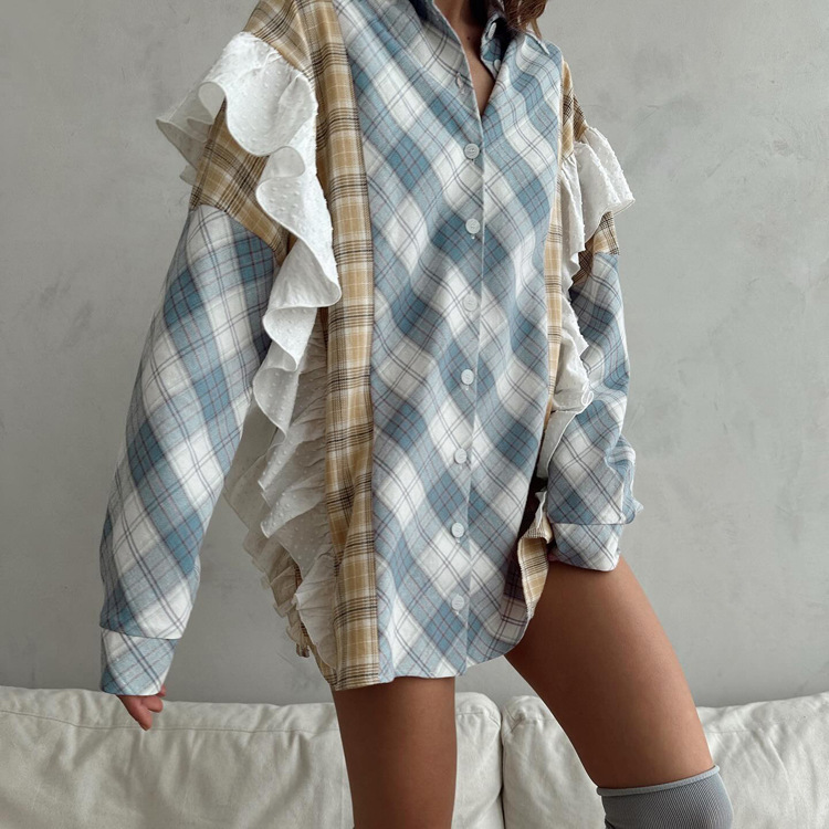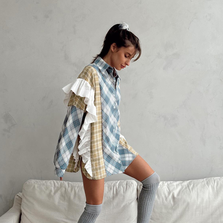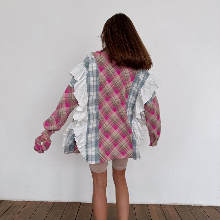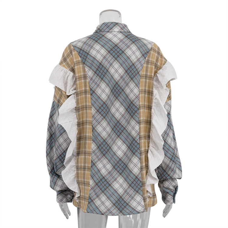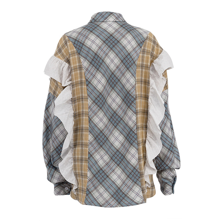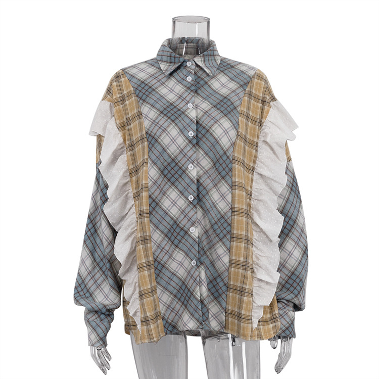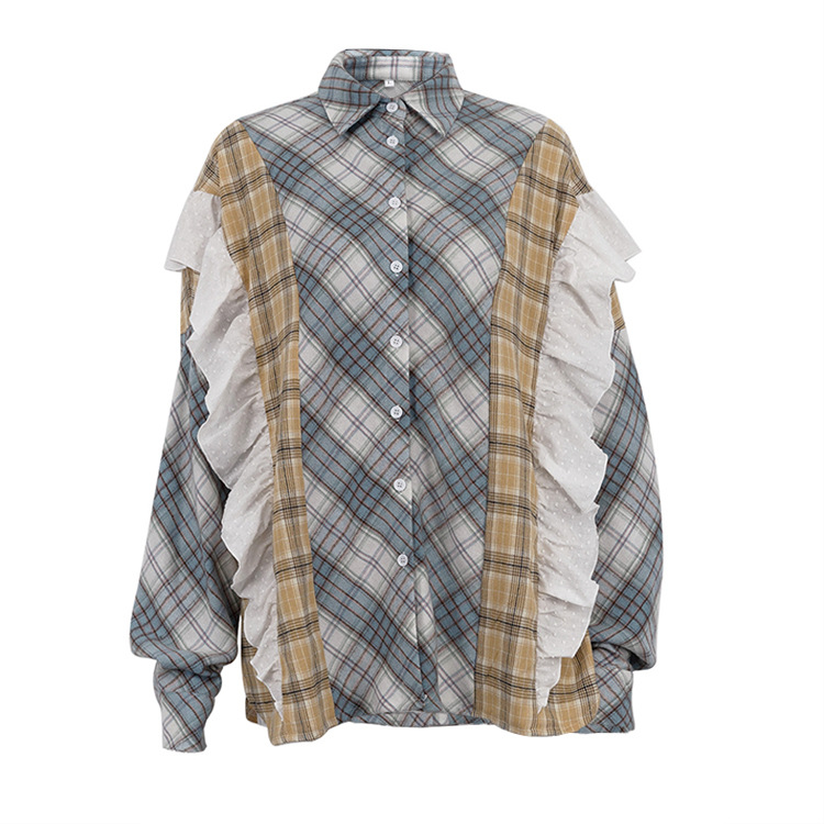 봄과 가을 얇은 단일 가슴 느슨한 캐주얼 패션 모든 경기 외부 블라우스 여성 유럽과 미국 스타일 스티칭 줄무늬 셔츠스토어 가기