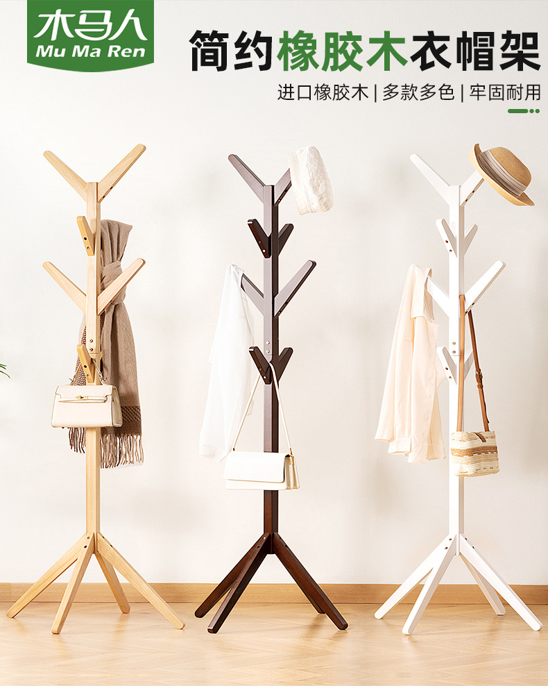 원목 옷걸이 스탠드, 옷걸이, 바닥형 옷걸이, 옷걸이용 가정용 스탠드, 침실용 스탠드형 심플 선반스토어 가기