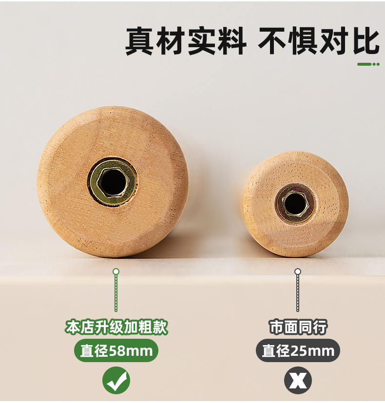• [수입 고무 목재-강화 및 대담한 58mm] 통나무 색상-3 다리 물방울 (업그레이드 라운드 10 훅)