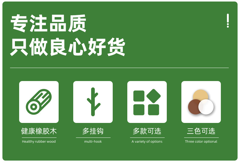 • [수입 고무 나무] 월넛 컬러-4 개의 다리 지점 (업그레이드 라운드 8 훅)