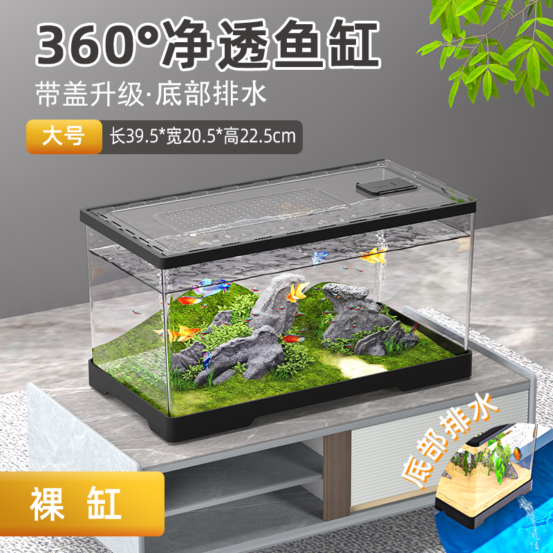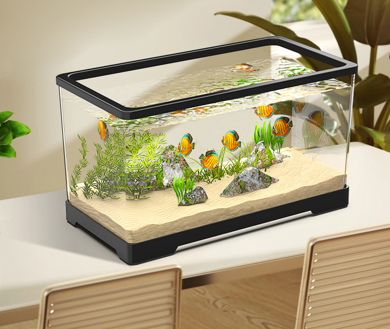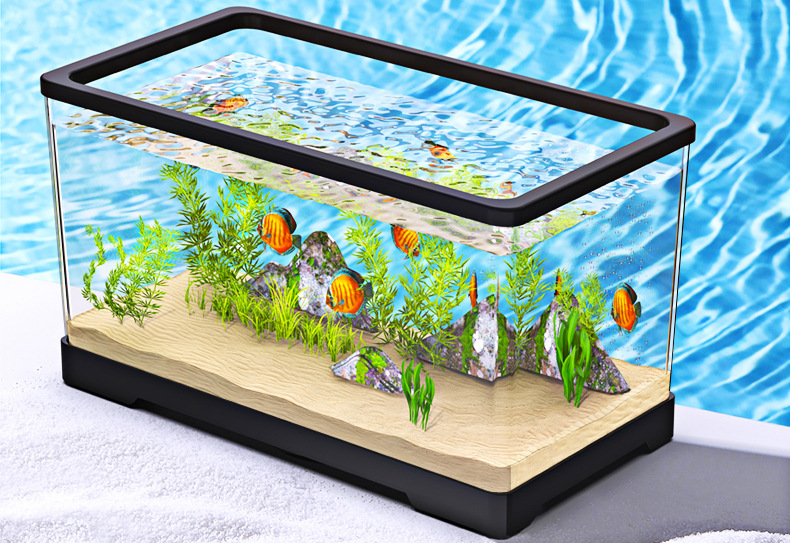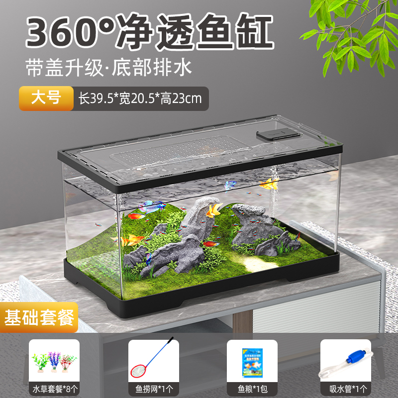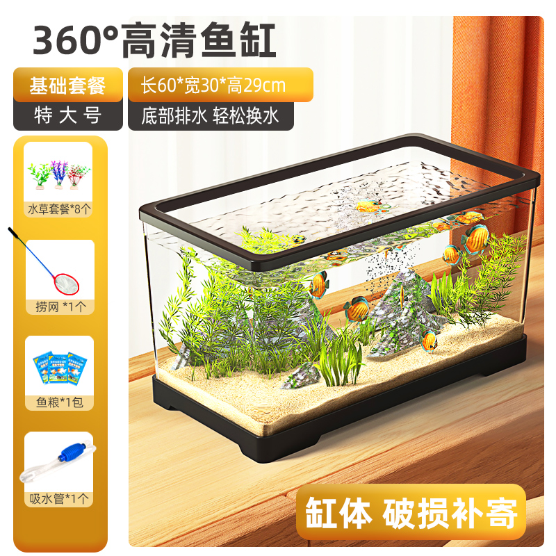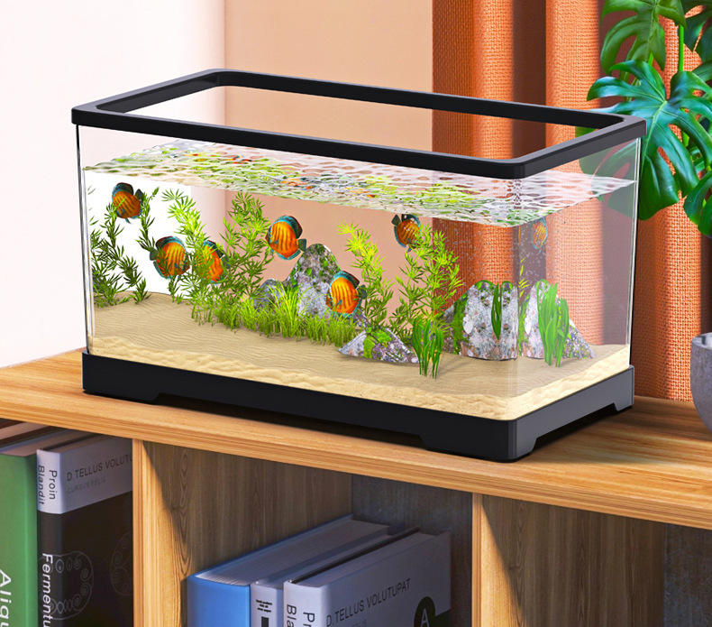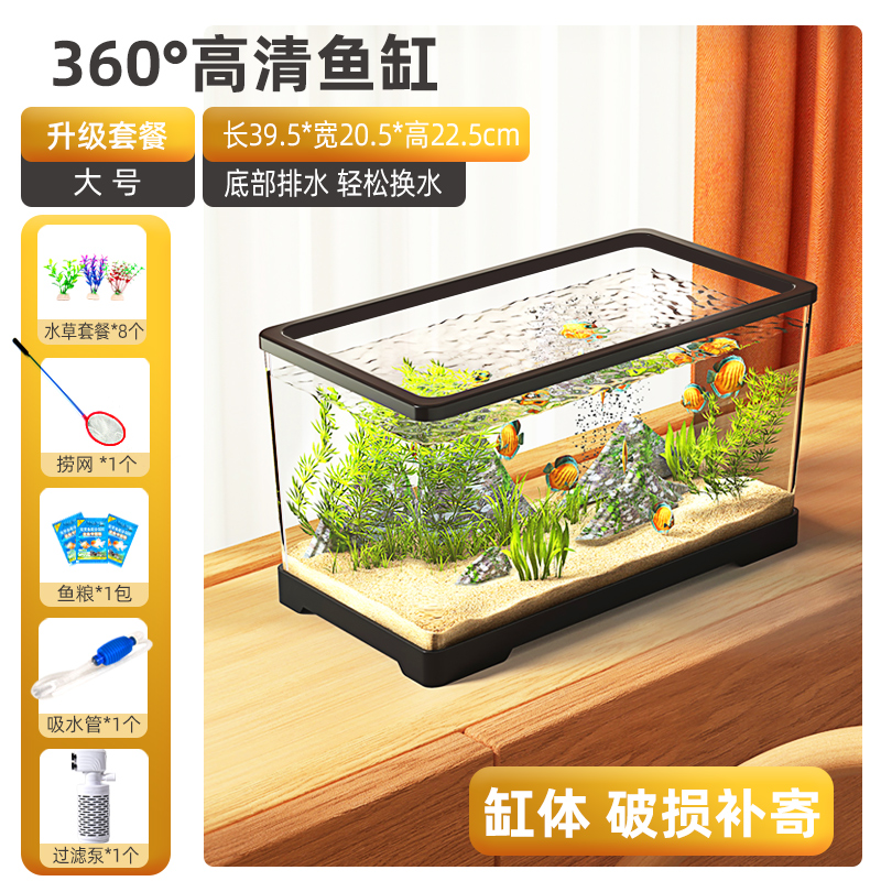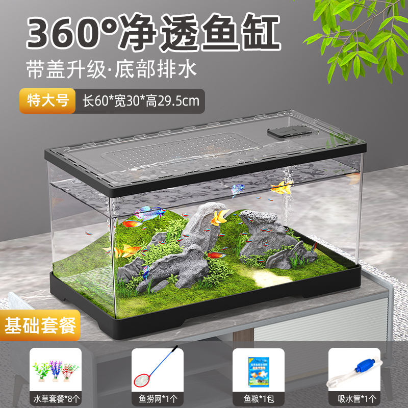 물고기 탱크 거실 중소 규모의 슈퍼 화이트 창조적 인 데스크탑 금붕어 탱크 홈 조경 자체 순환 생태 수족관의 전체 세트