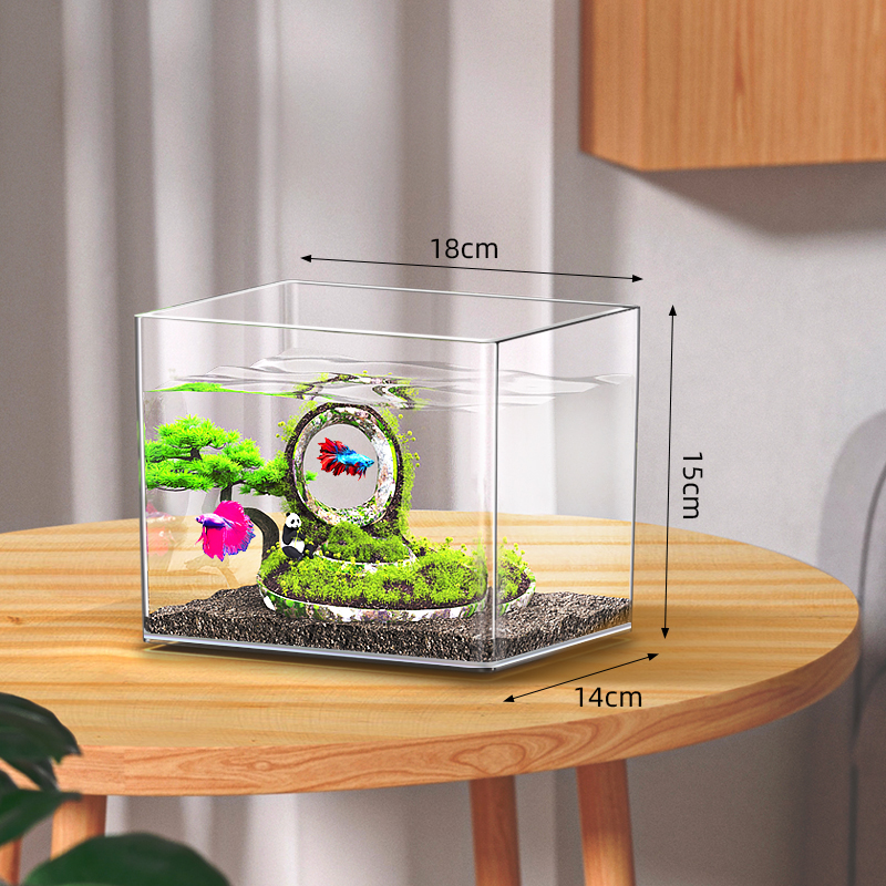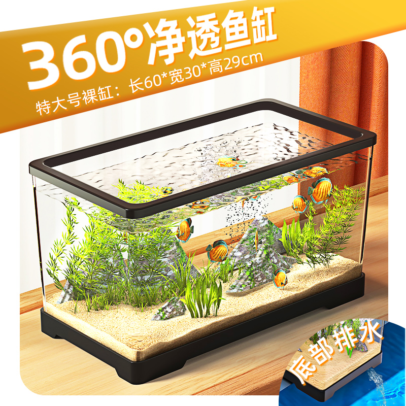 물고기 탱크 거실 중소 규모의 슈퍼 화이트 창조적 인 데스크탑 금붕어 탱크 홈 조경 자체 순환 생태 수족관의 전체 세트스토어 가기