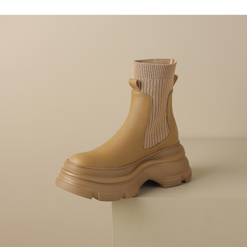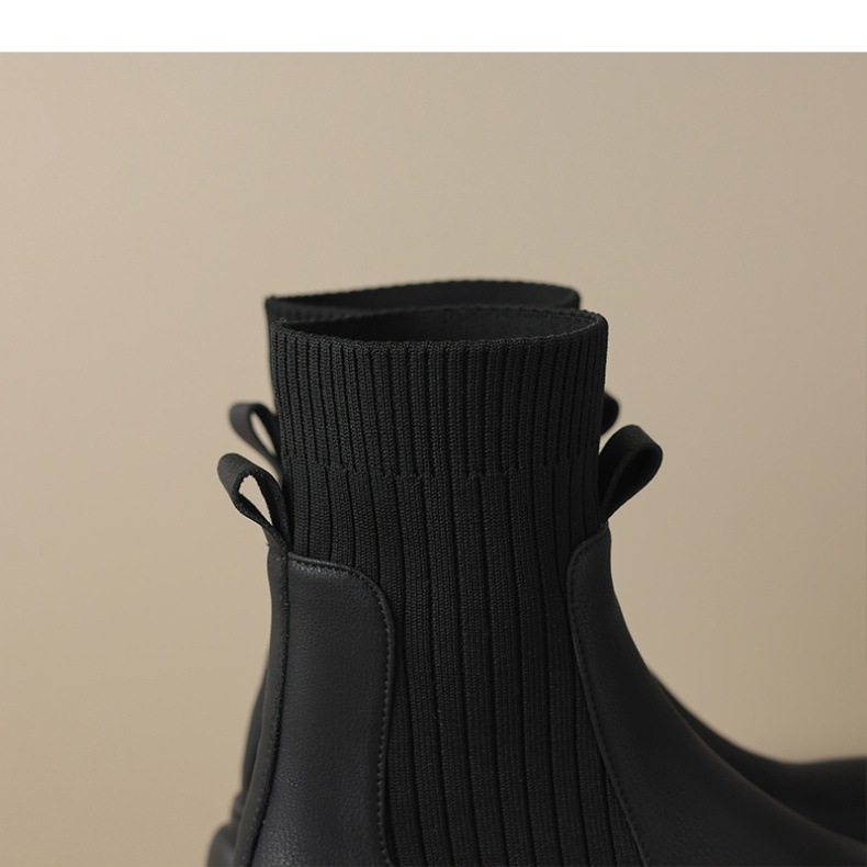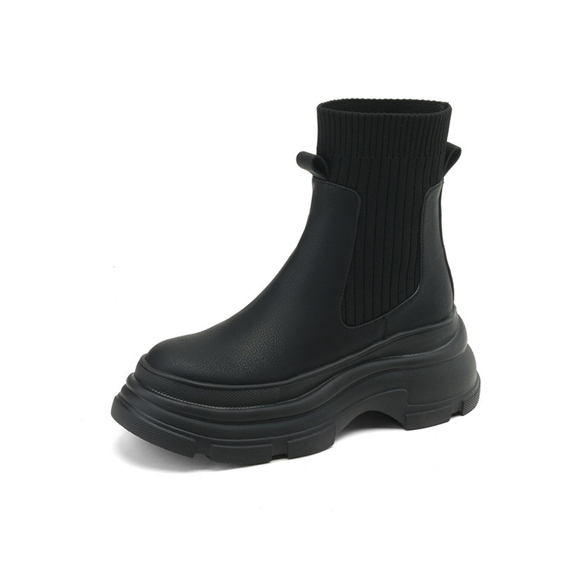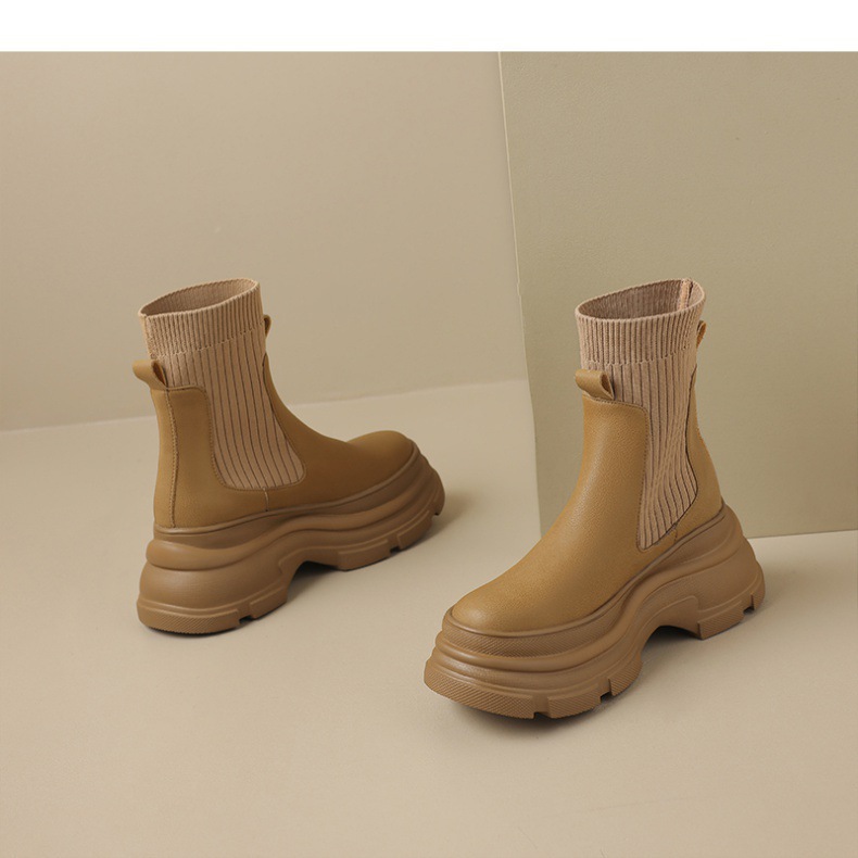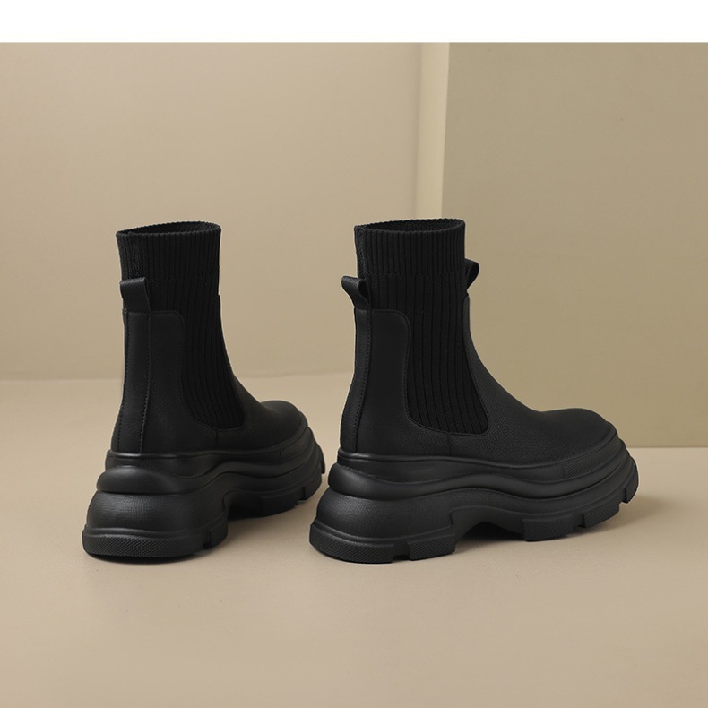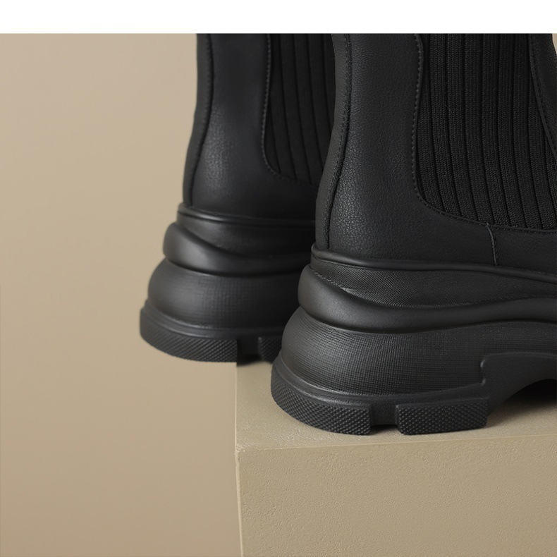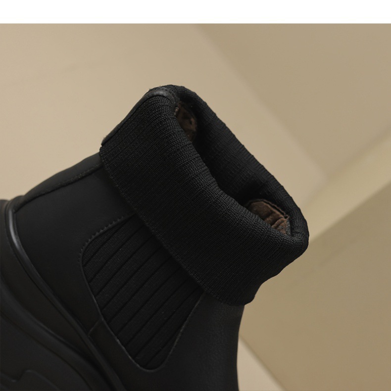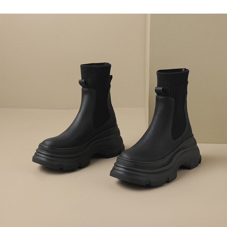 2024 가을과 겨울을위한 여성용 두꺼운 하단 짧은 부츠 새로운 영국 스타일 양모 입 플랫폼 하단 부츠 작은 스트레치 부츠스토어 가기