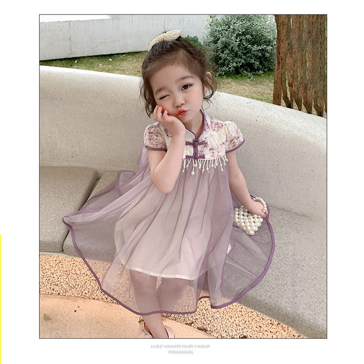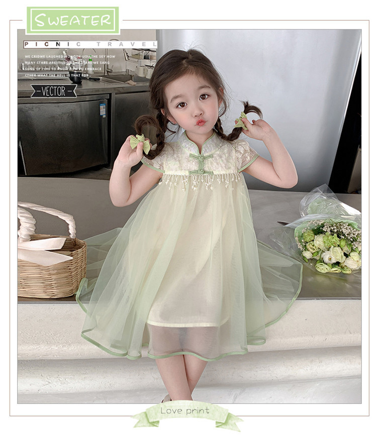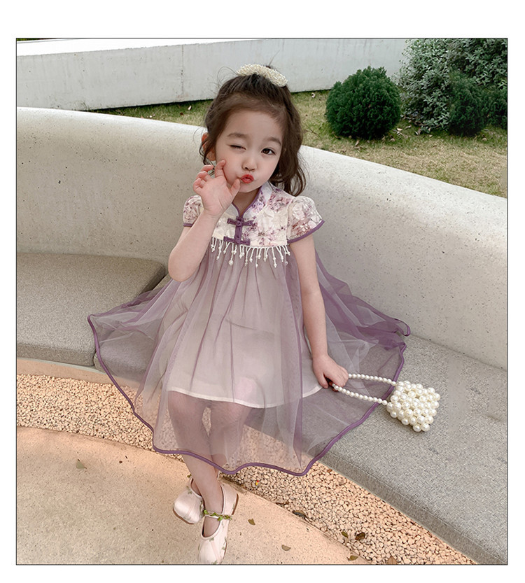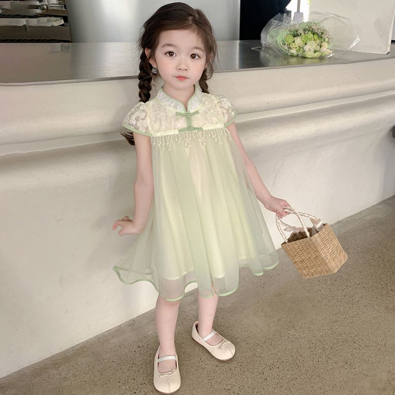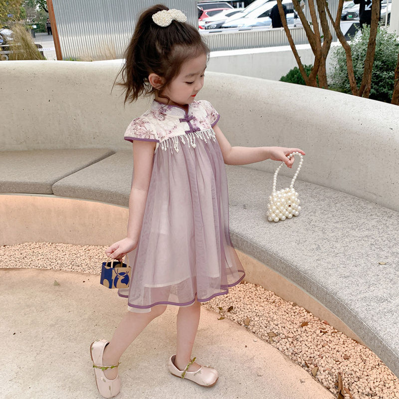 여아 치파오 원피스 여름 스타일 2024 여름 레트로 중국풍 아동복 스커트 당나라 스타일 A라인 스커트스토어 가기