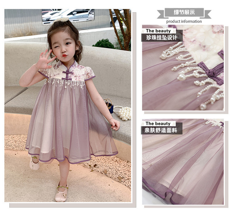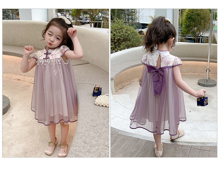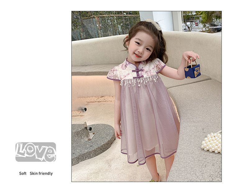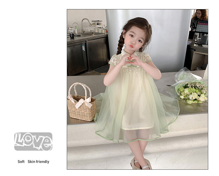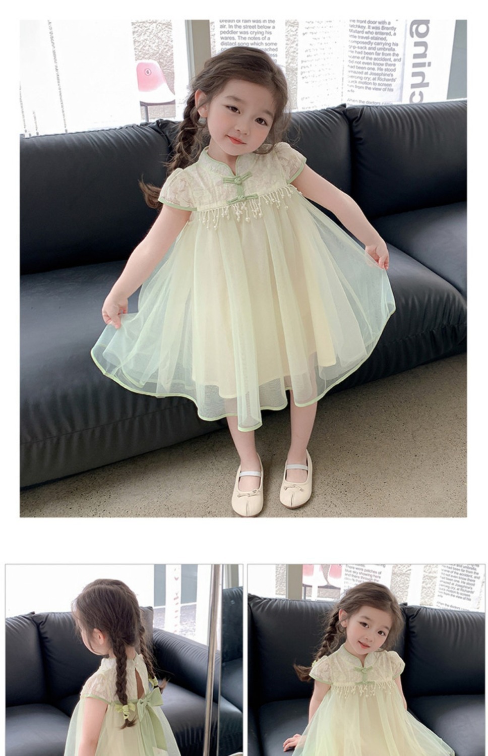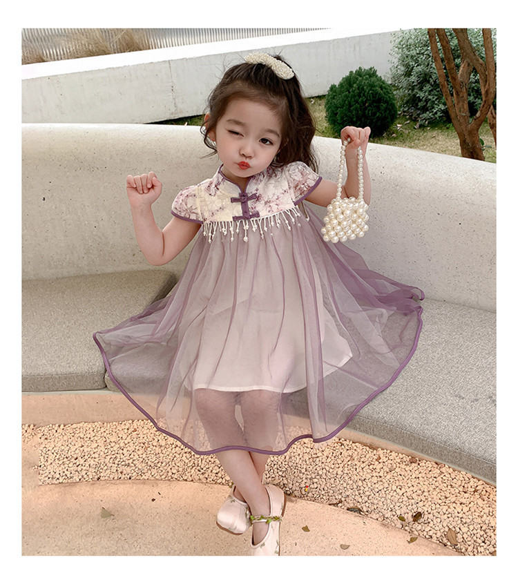 여아 치파오 원피스 여름 스타일 2024 여름 레트로 중국풍 아동복 스커트 당나라 스타일 A라인 스커트스토어 가기