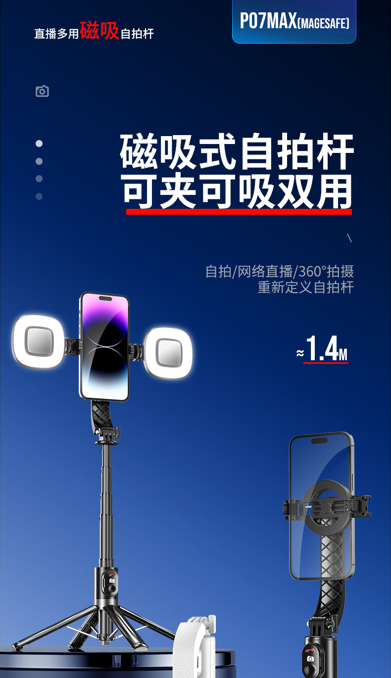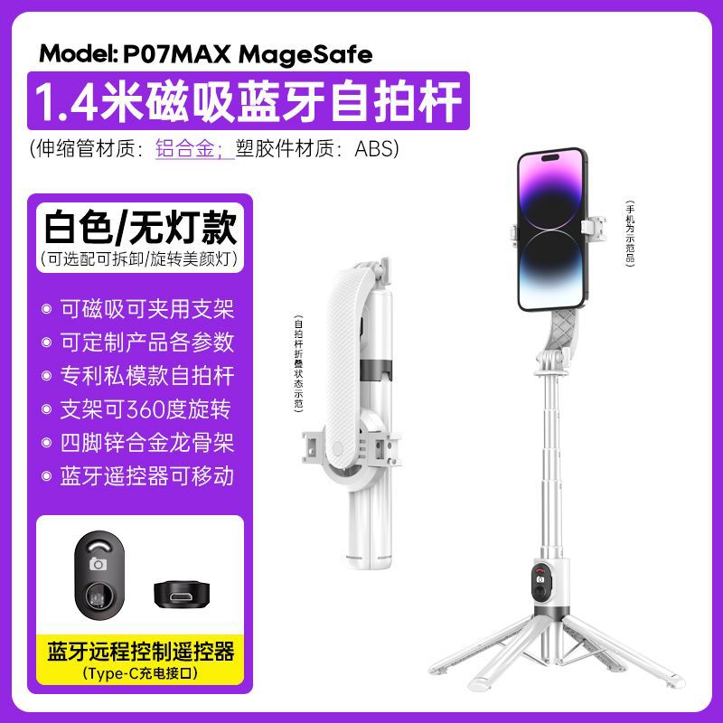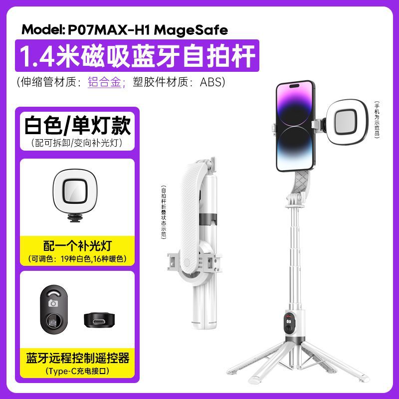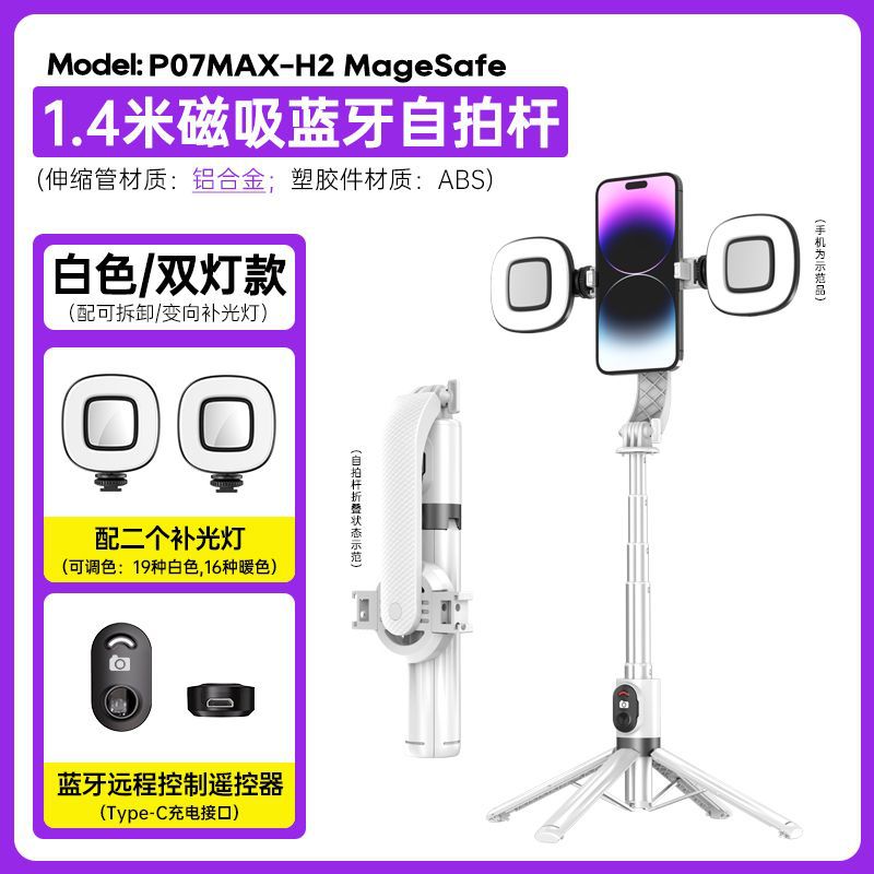 • P07MAX-H2 Magsafe 자기 셀카봉/화이트/듀얼 라이트