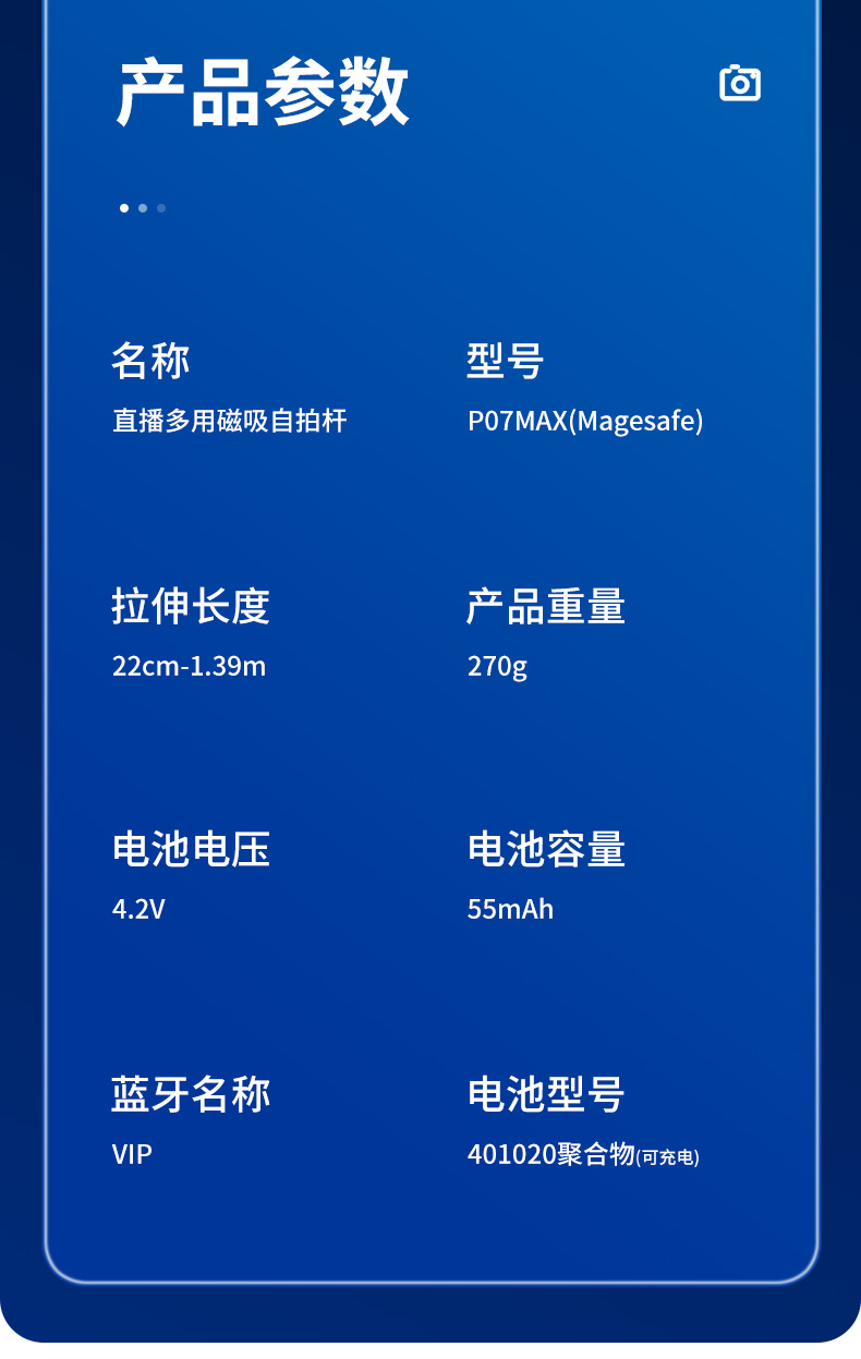 • P07MAX Magsafe 마그네틱 셀카봉/블랙/라이트 없음