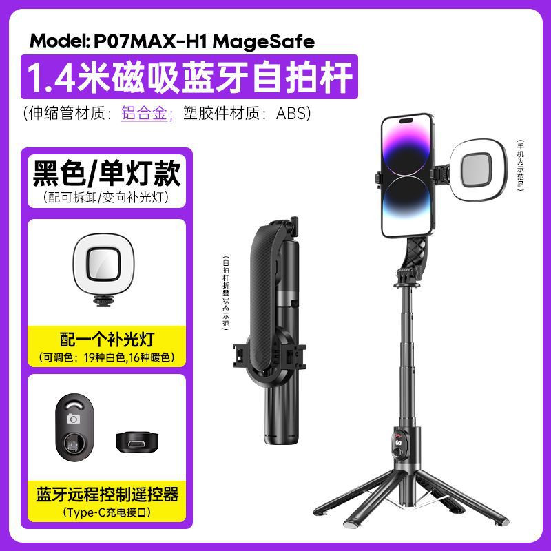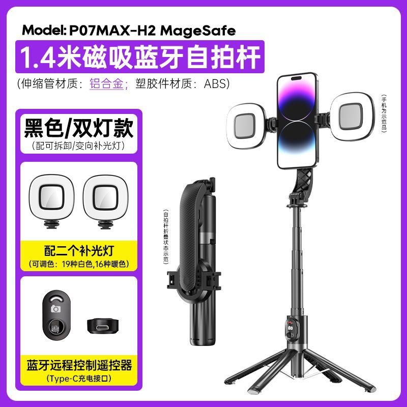 • P07MAX-H2 Magsafe 마그네틱 셀카봉/블랙/듀얼 라이트