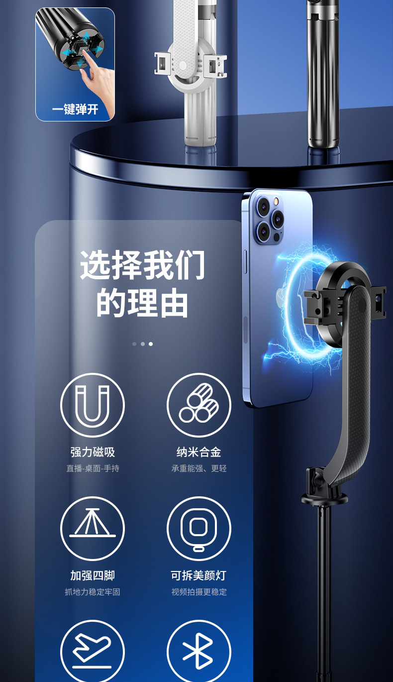마그네틱 셀카 스틱 국경 간 magsafe 사진 브래킷 블루투스 휴대 전화 쿼드 머세이프 마그네틱 셀카 스틱