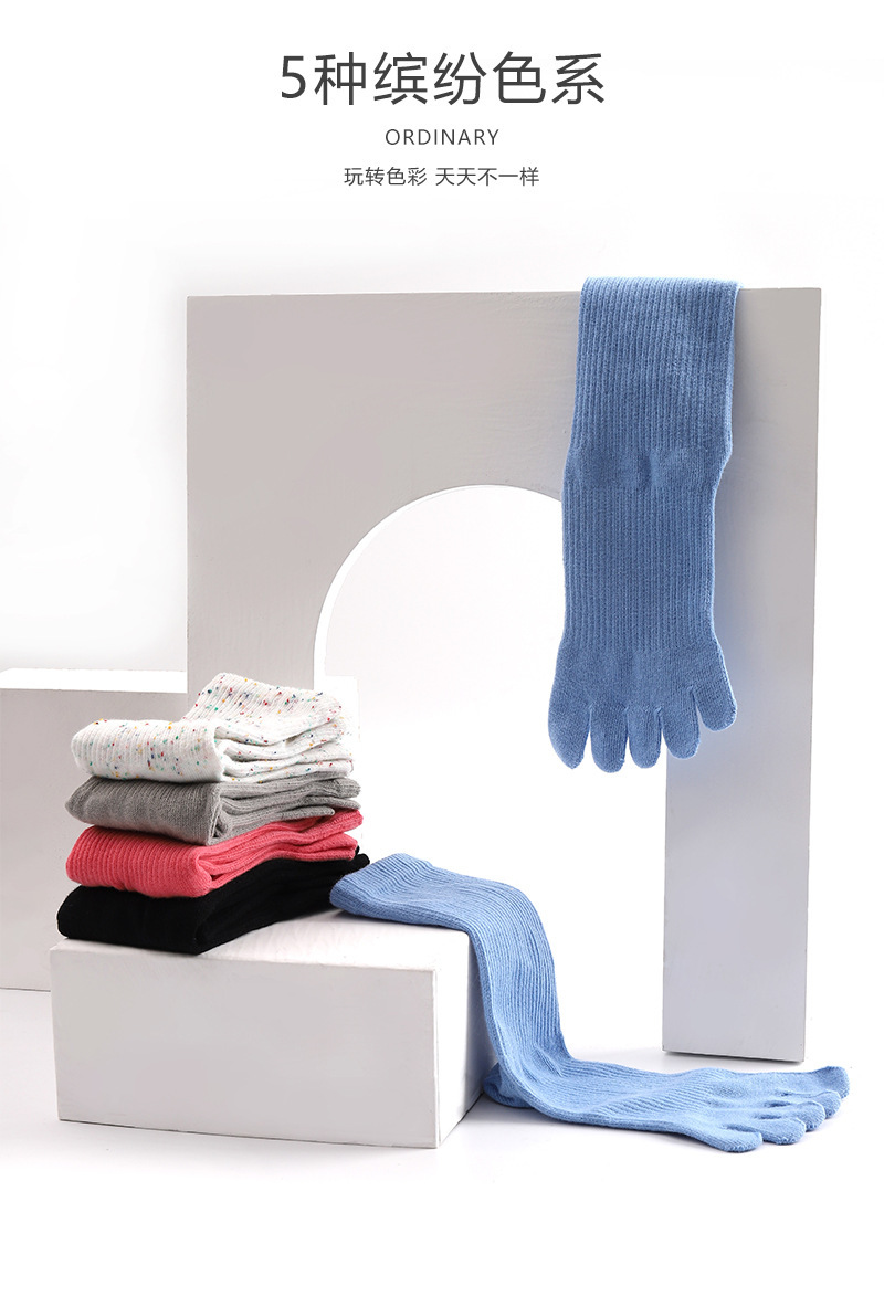 跨境外贸批发中筒五指袜 女纯色棉吸汗ins潮百搭韩运动健身分趾袜
