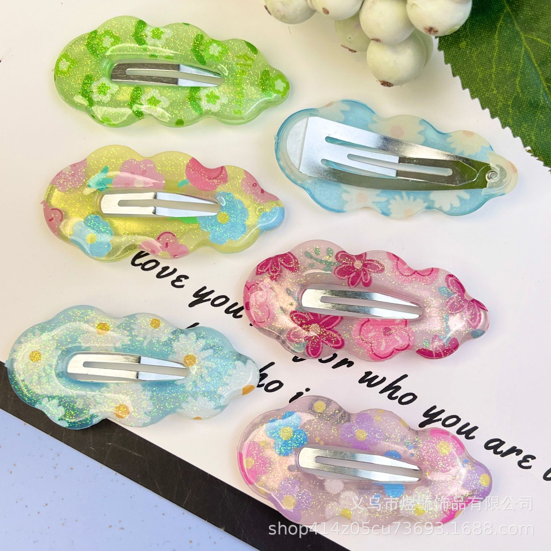 • 인어 지 드롭 오일 진주 얇은 플래시 6cm 사각형 구름 금속 클립 혼합 싱글
