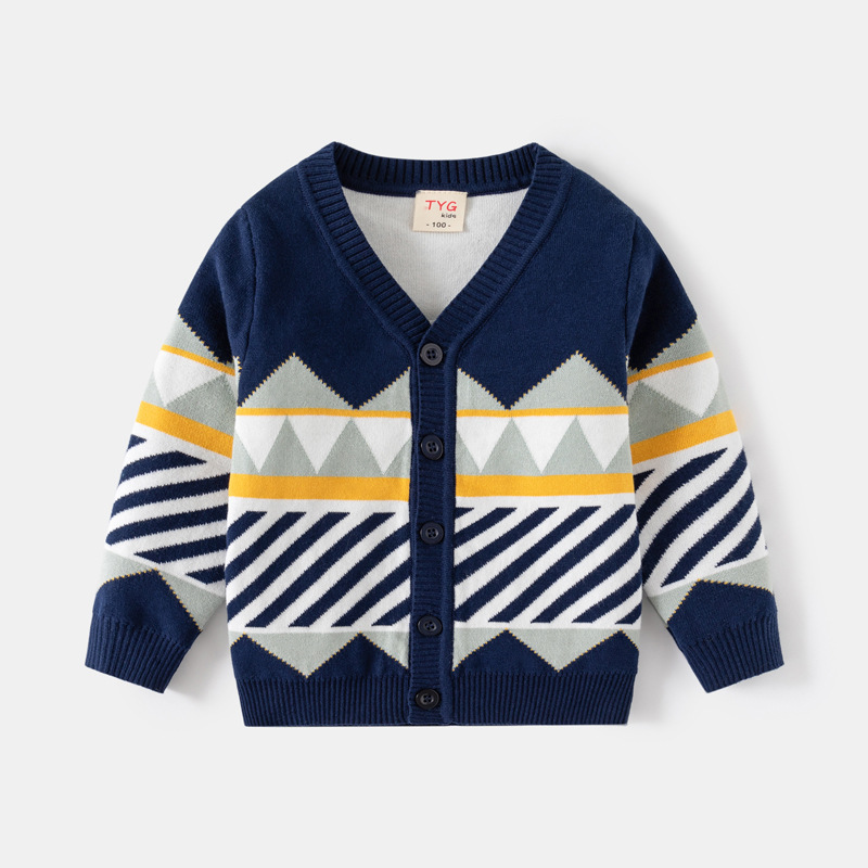 Tengyun 비둘기 아동복 소년 줄무늬 마름모 더블 자카드 울 코트 도매 어린이 잘 생긴 스웨터 카디건