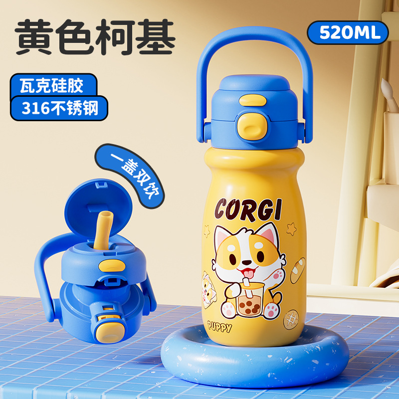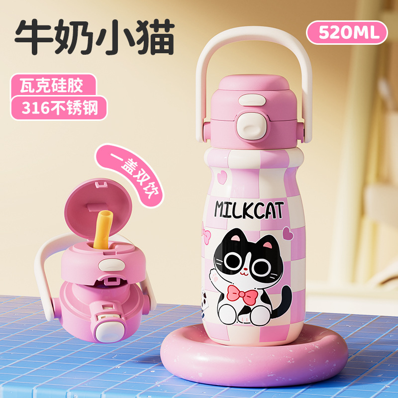 고급스러운 만화 어린이 보온병 컵 316 스테인레스 스틸 한 컵 이중 마시는 컵 귀여운 학생 휴대용 주전자