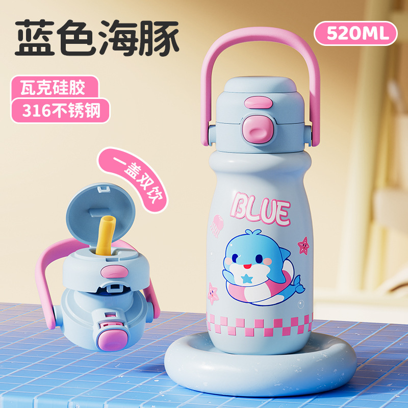 고급스러운 만화 어린이 보온병 컵 316 스테인레스 스틸 한 컵 이중 마시는 컵 귀여운 학생 휴대용 주전자스토어 가기