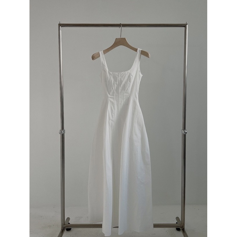 한국 동대문 여름 의류 새로운 한국 스타일 허리 슬리밍 기질 여성을위한 간단한 민소매 중간 길이 스커트 서스펜더 드레스