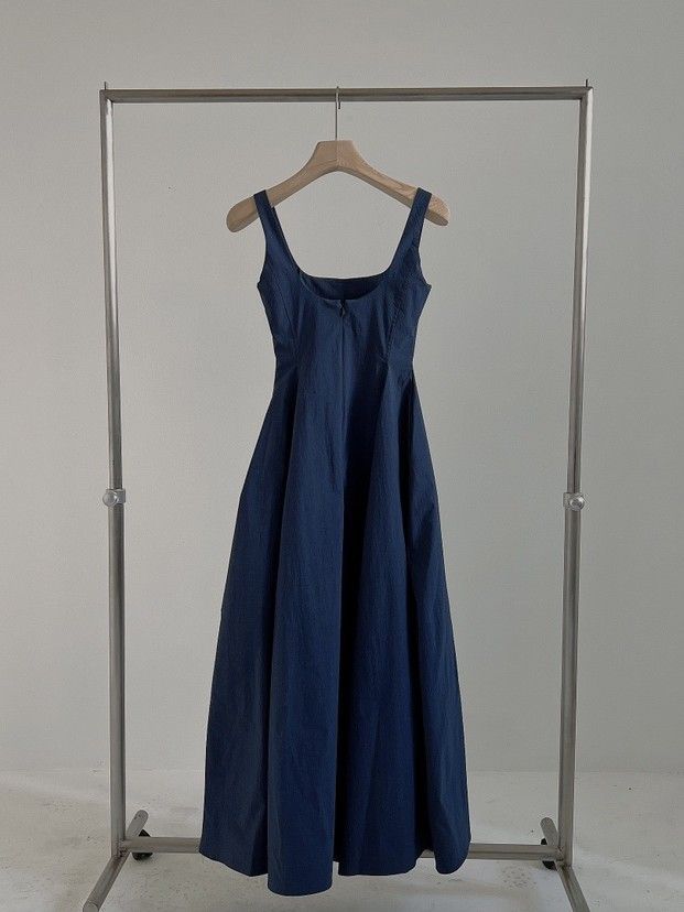 한국 동대문 여름 의류 새로운 한국 스타일 허리 슬리밍 기질 여성을위한 간단한 민소매 중간 길이 스커트 서스펜더 드레스스토어 가기