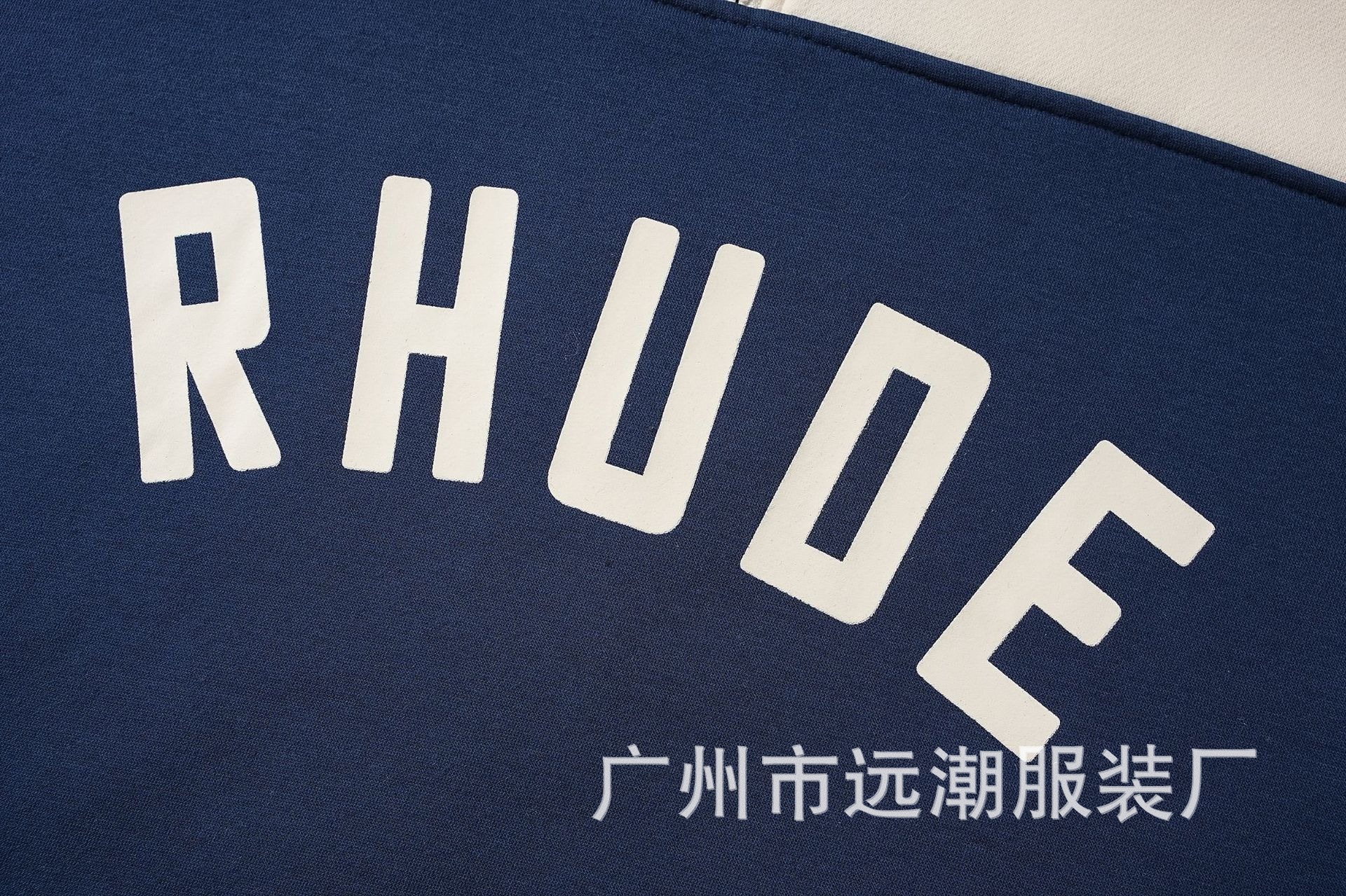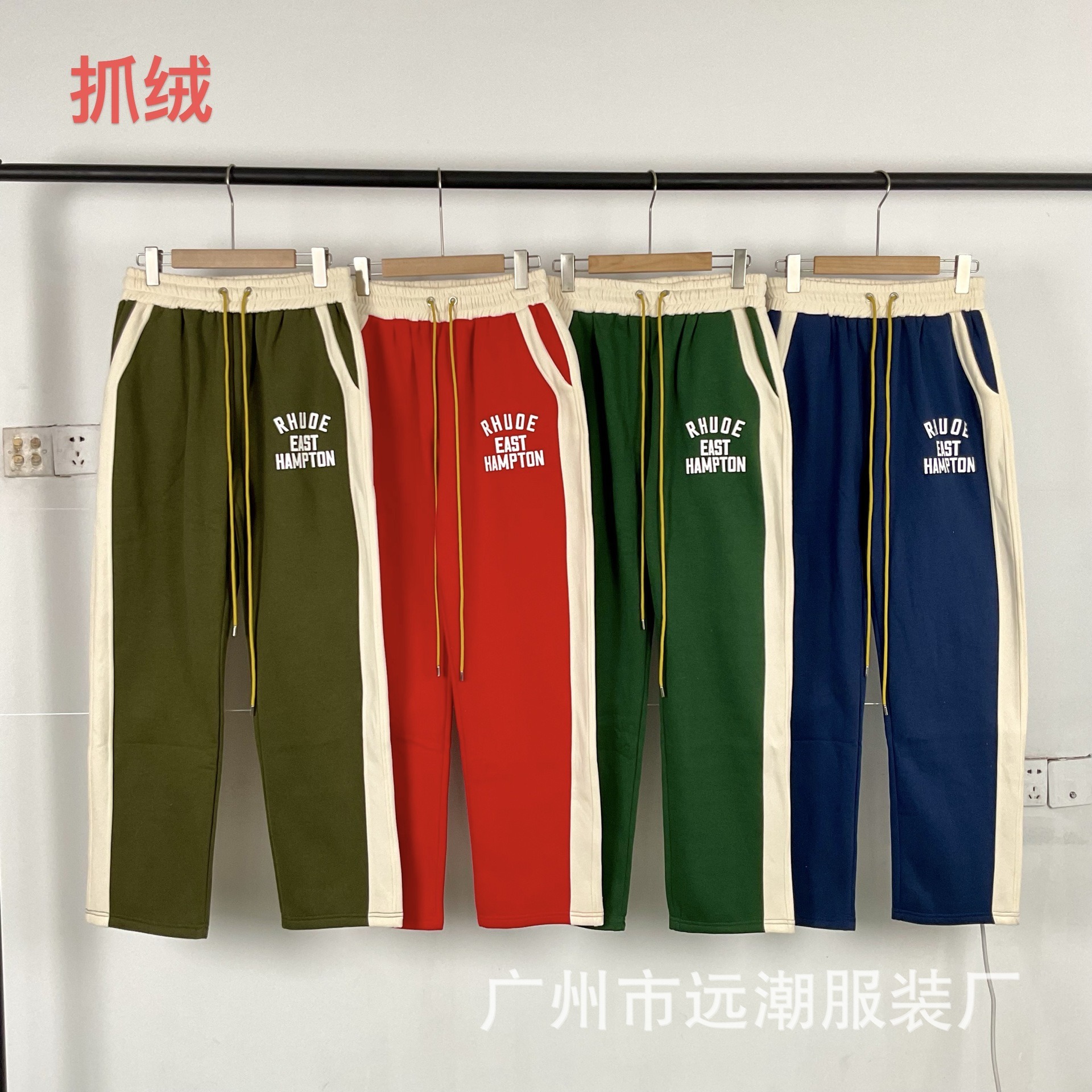 24SS 국경 유럽 및 미국 패션 브랜드 RHUDE 컬러 매칭 기모 반 지퍼 스웨터 남성과 여성의 하이 스트리트 스포츠 바지 세트스토어 가기