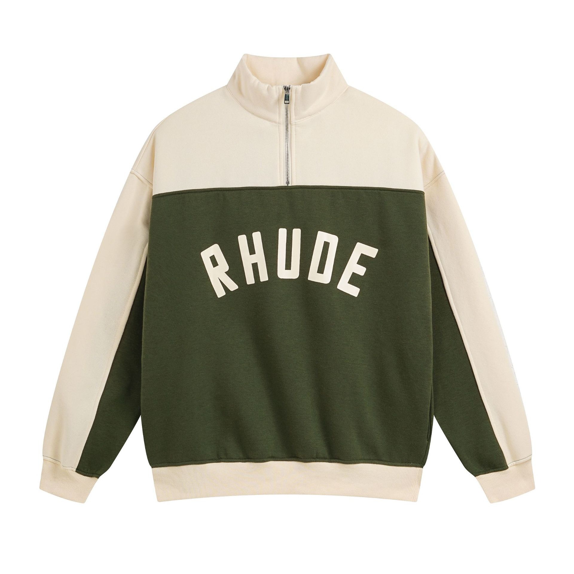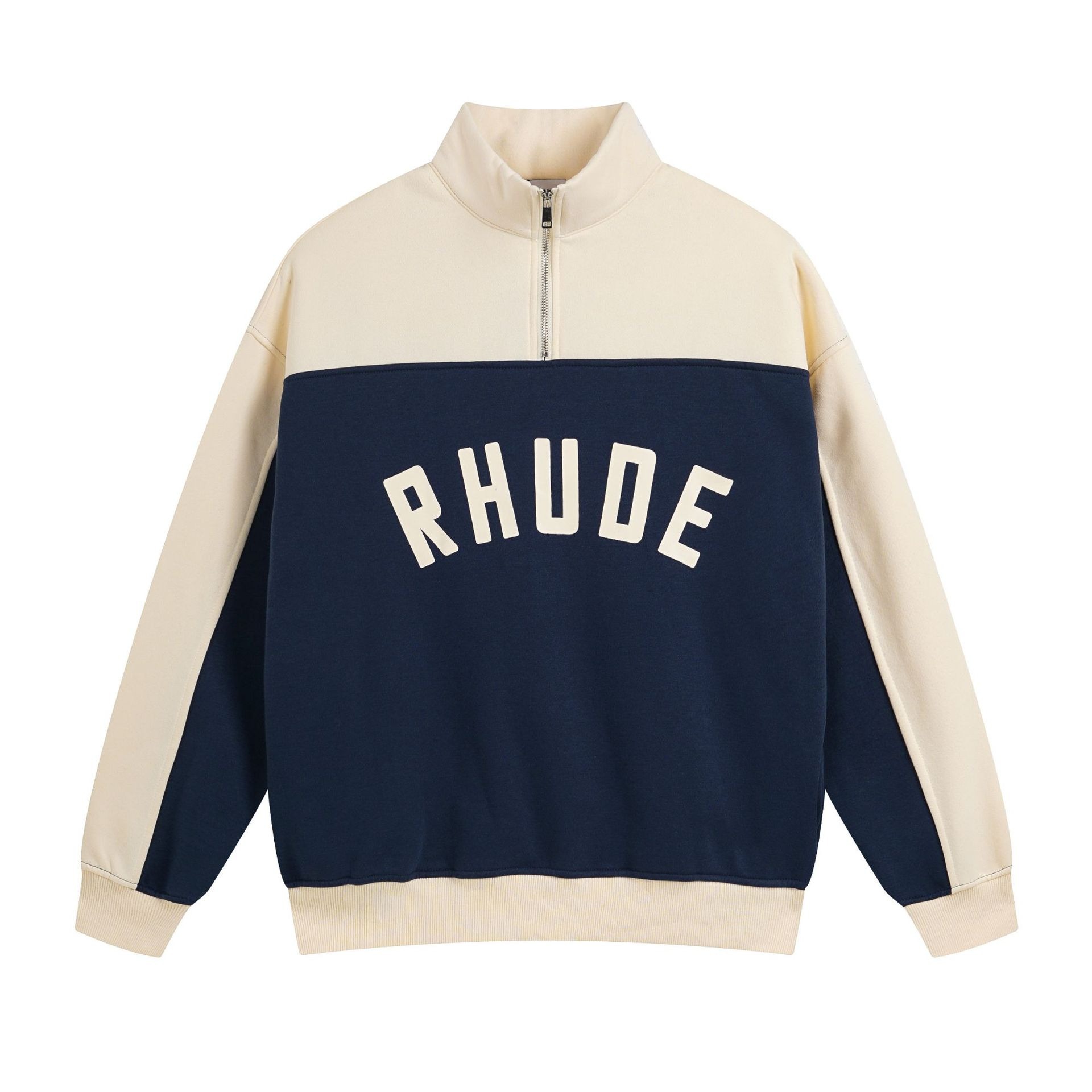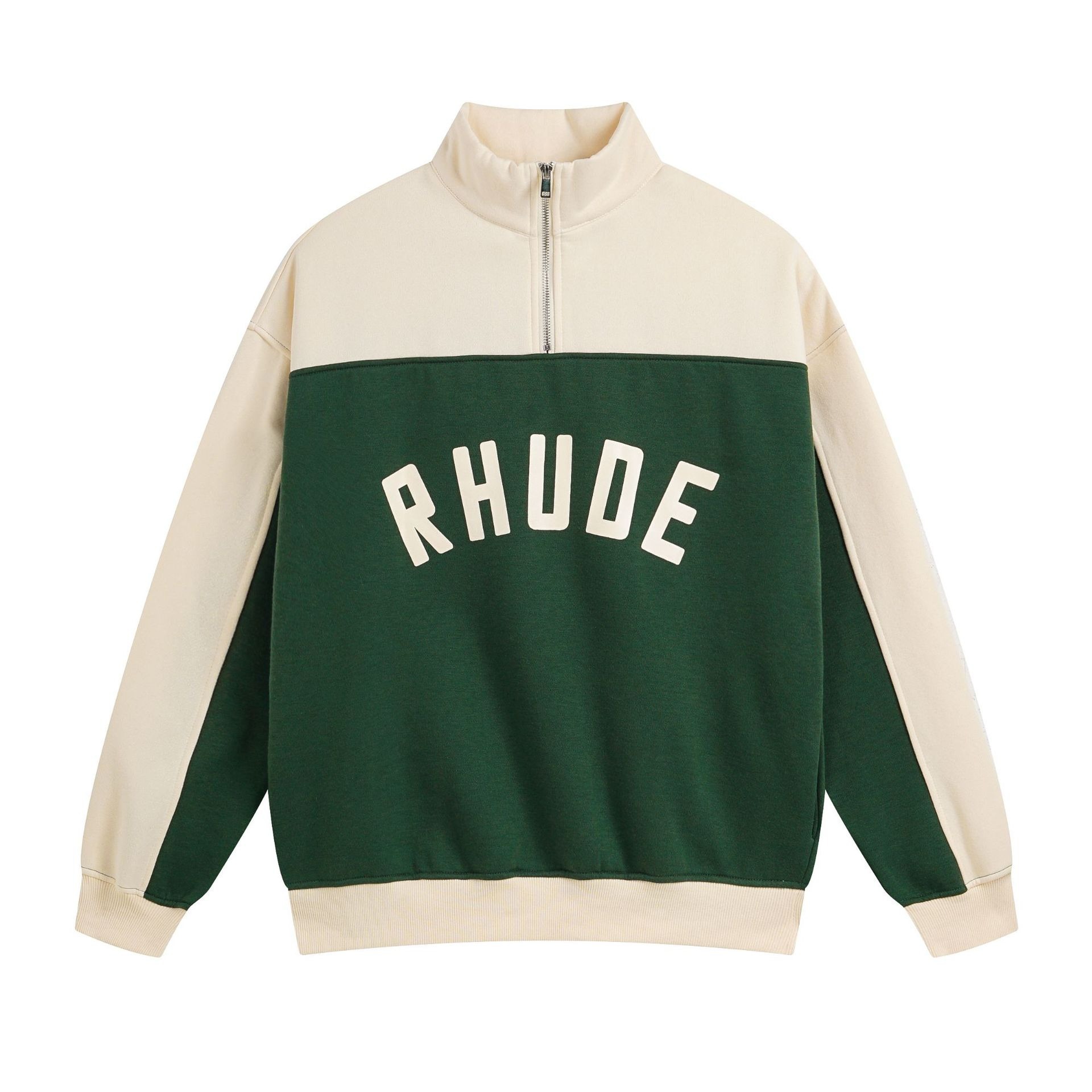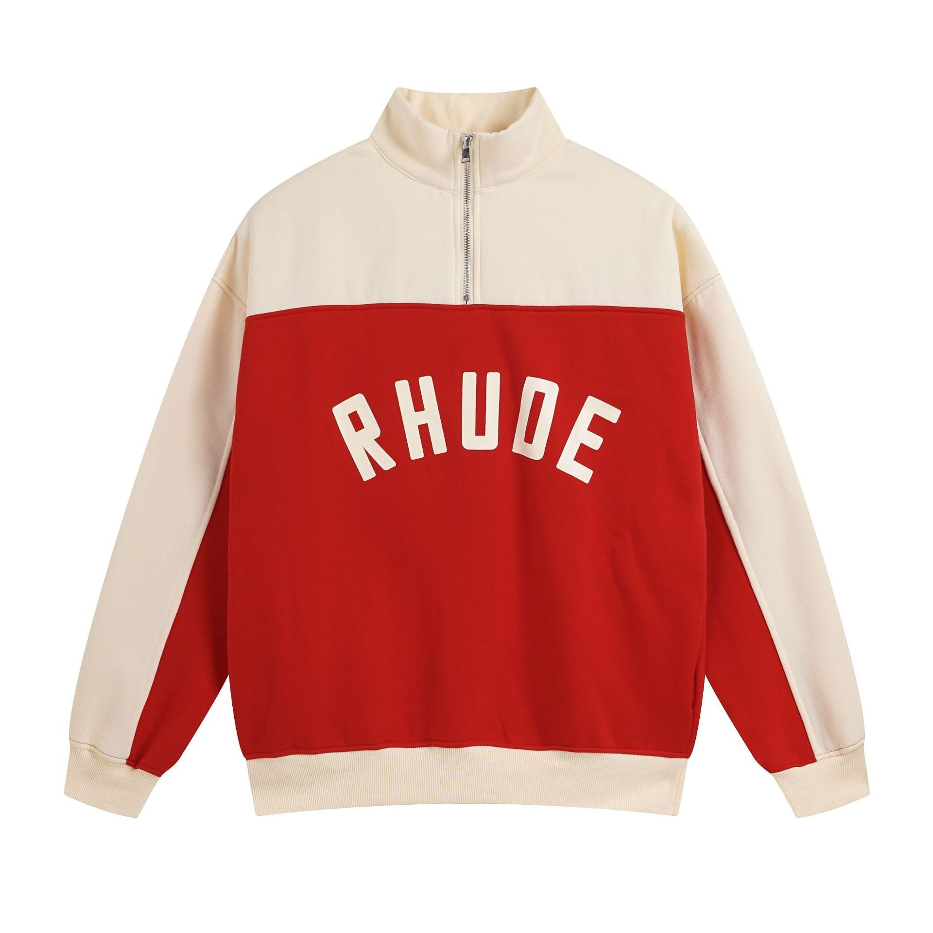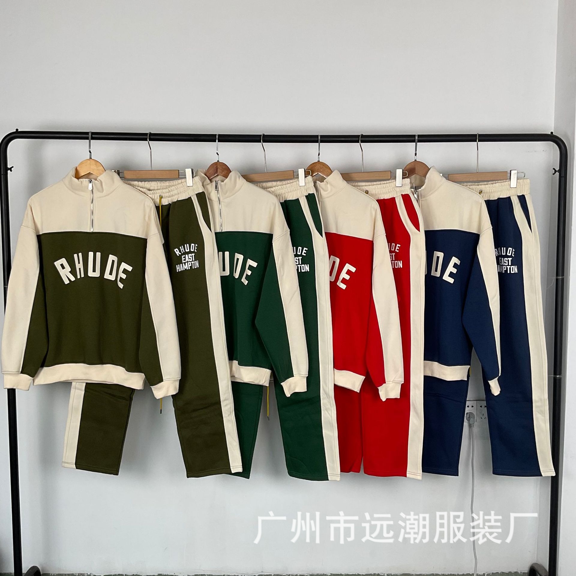 24SS 국경 유럽 및 미국 패션 브랜드 RHUDE 컬러 매칭 기모 반 지퍼 스웨터 남성과 여성의 하이 스트리트 스포츠 바지 세트