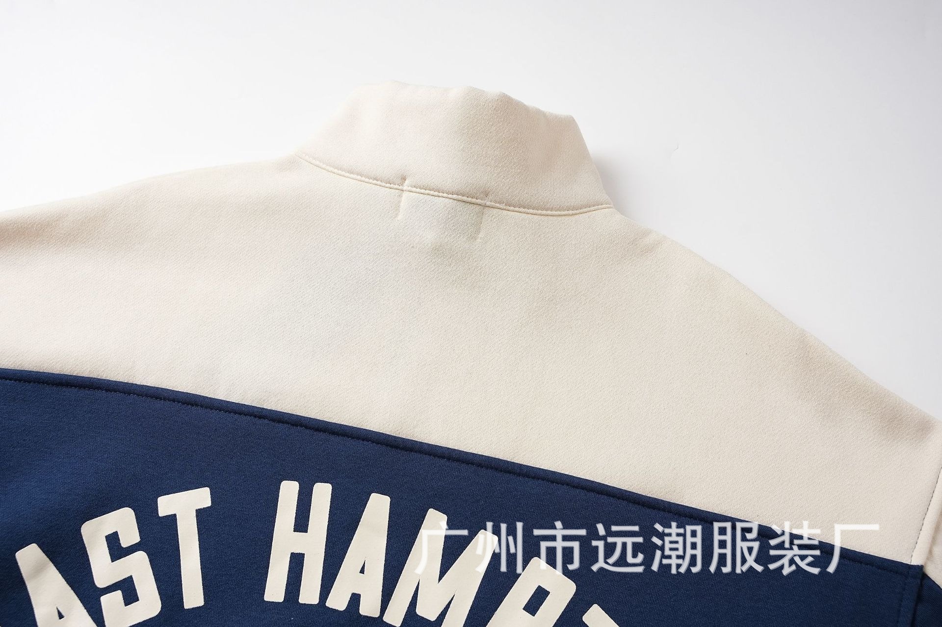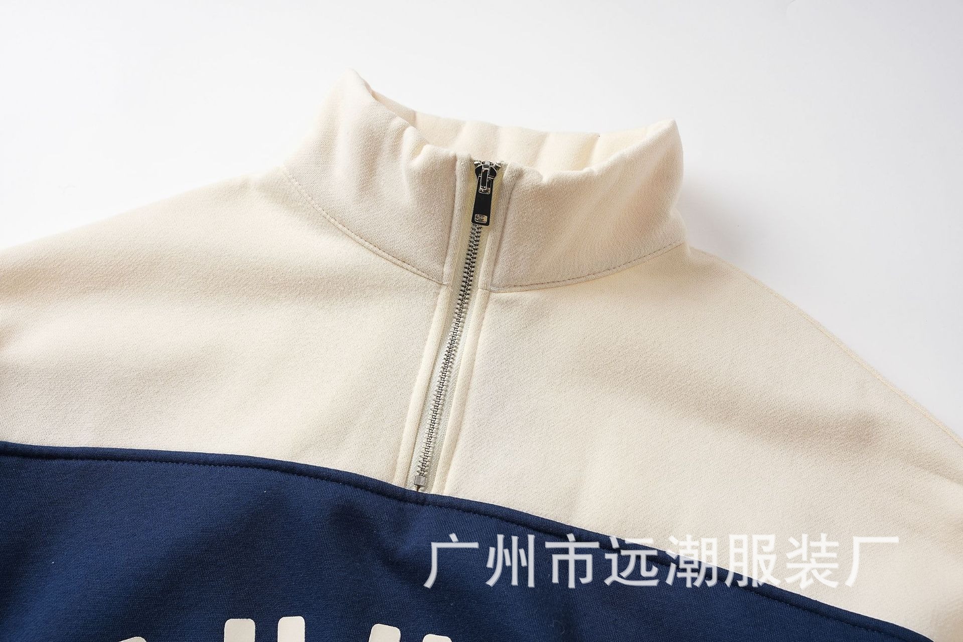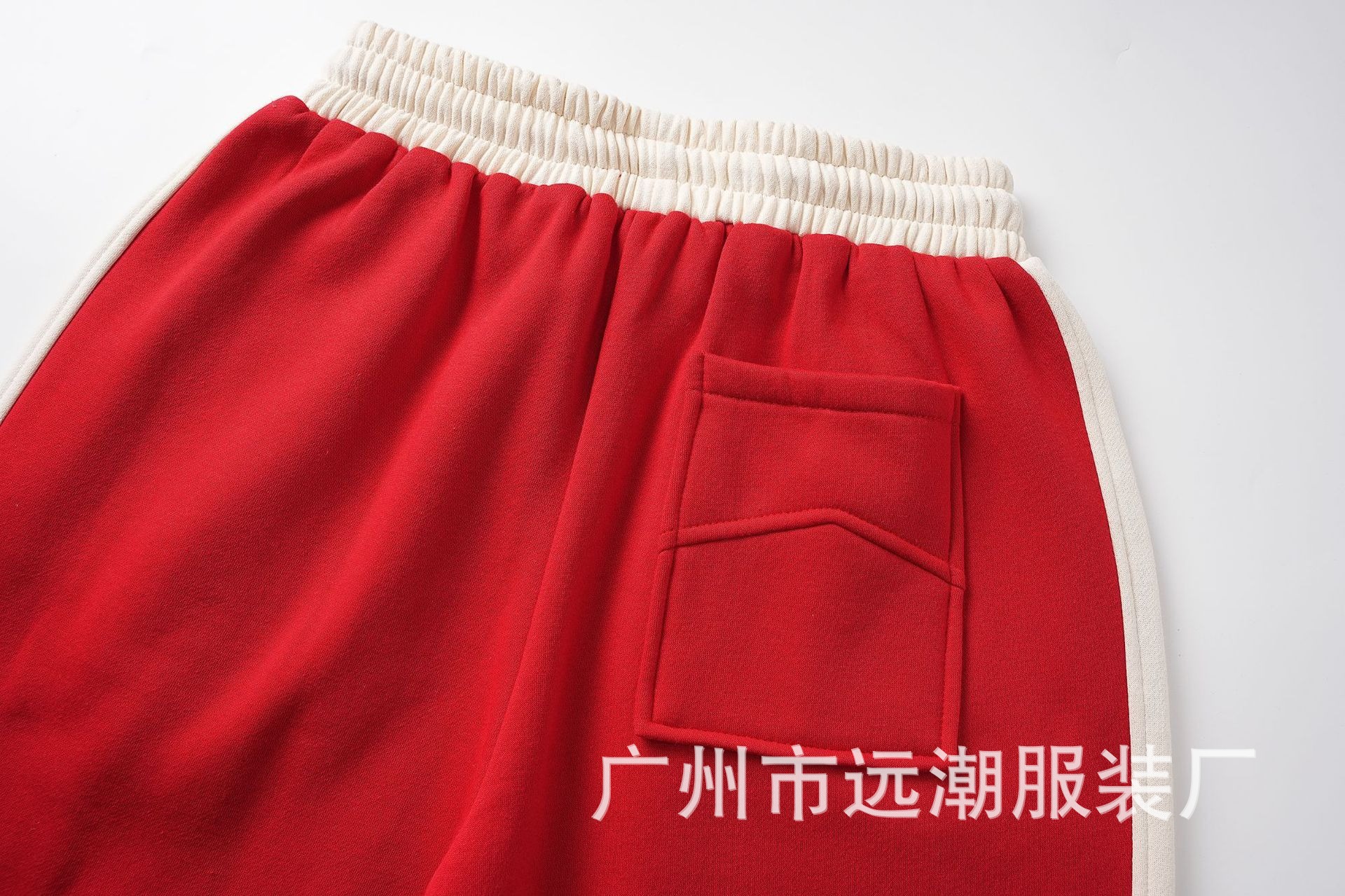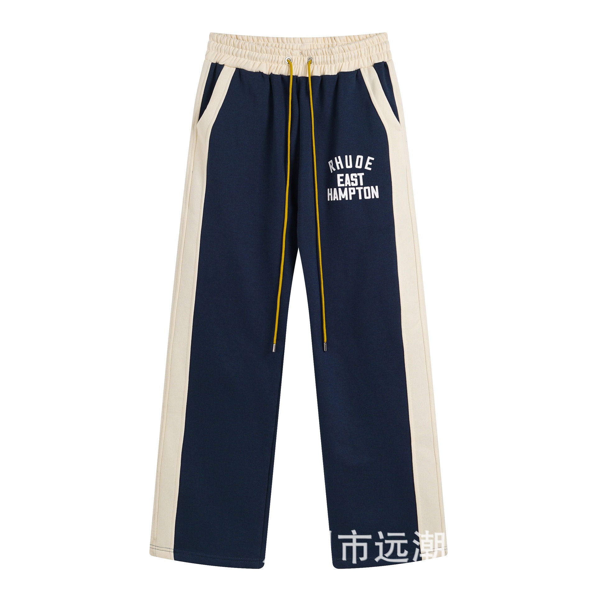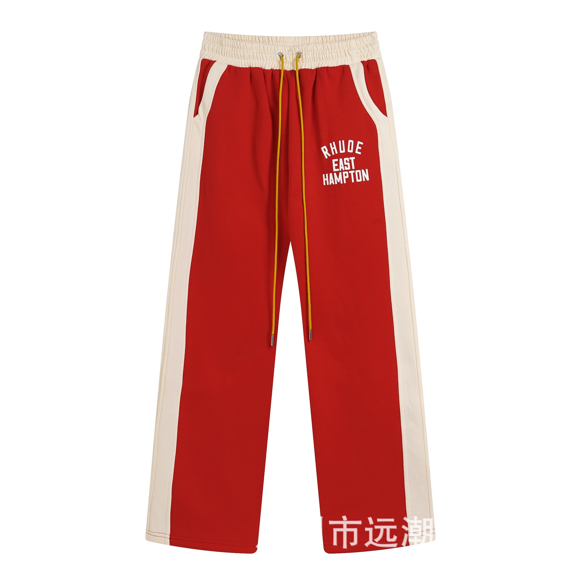 24SS 국경 유럽 및 미국 패션 브랜드 RHUDE 컬러 매칭 기모 반 지퍼 스웨터 남성과 여성의 하이 스트리트 스포츠 바지 세트
