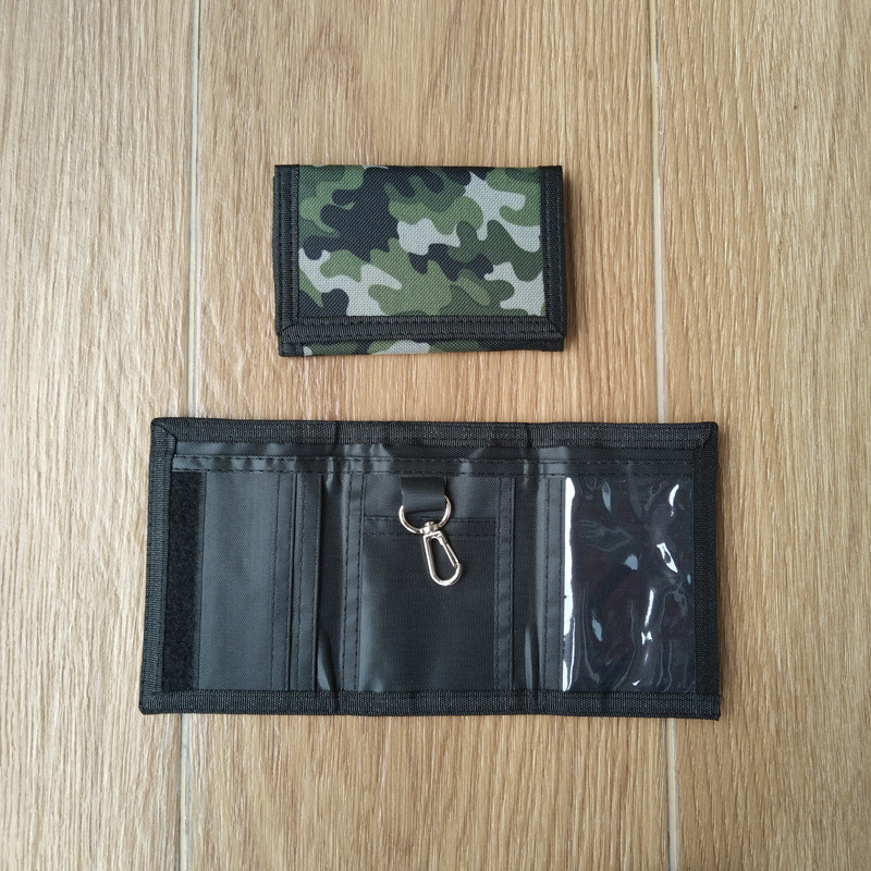 名称:龙虾扣迷彩户外折叠钱包适合6-16岁男孩青少年女孩三折式儿童钱包材料:尺寸:24*12cm,折叠后尺寸:12*8*1cm颜色:迷彩等 ,可根据客户要求定制