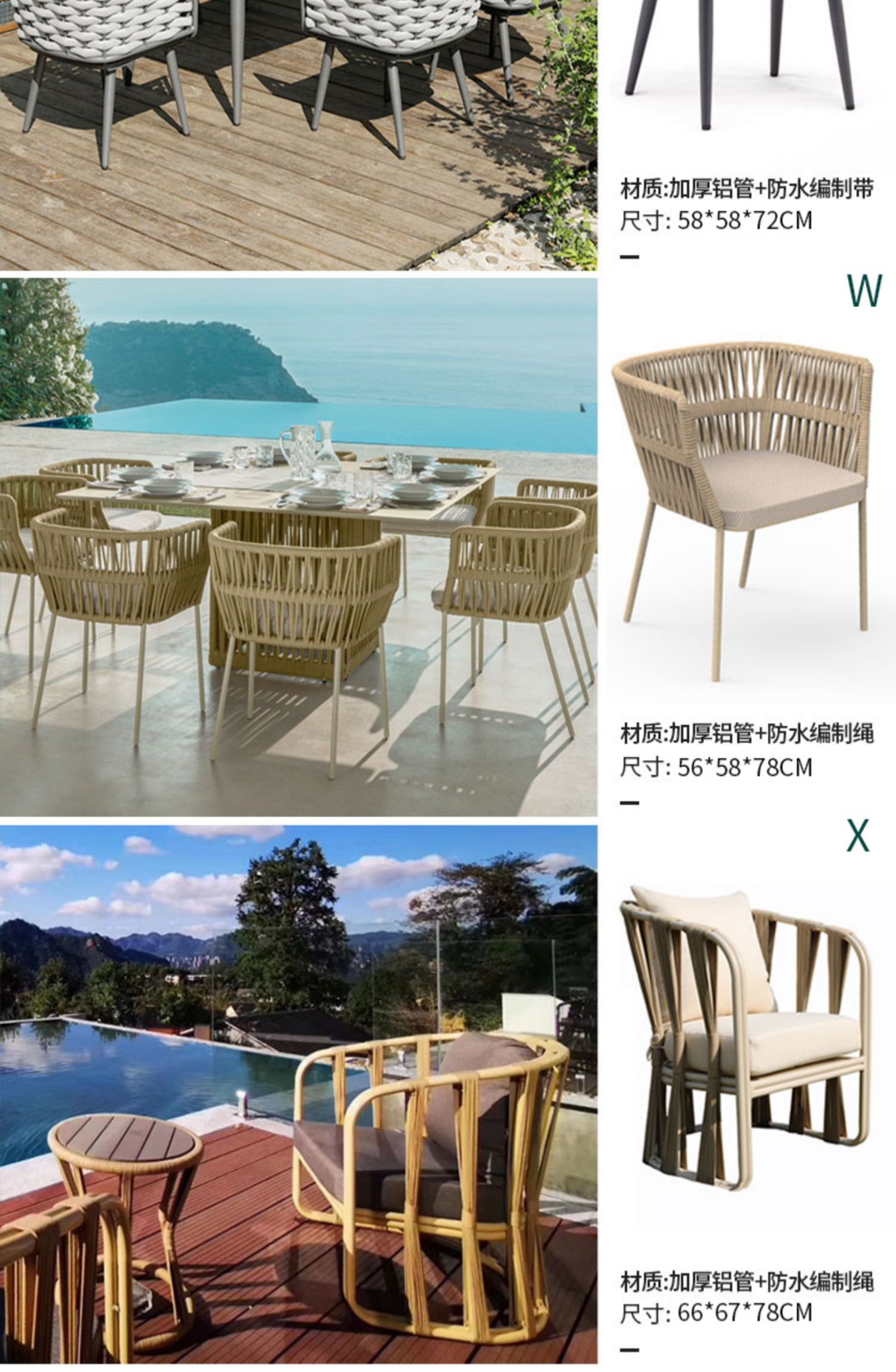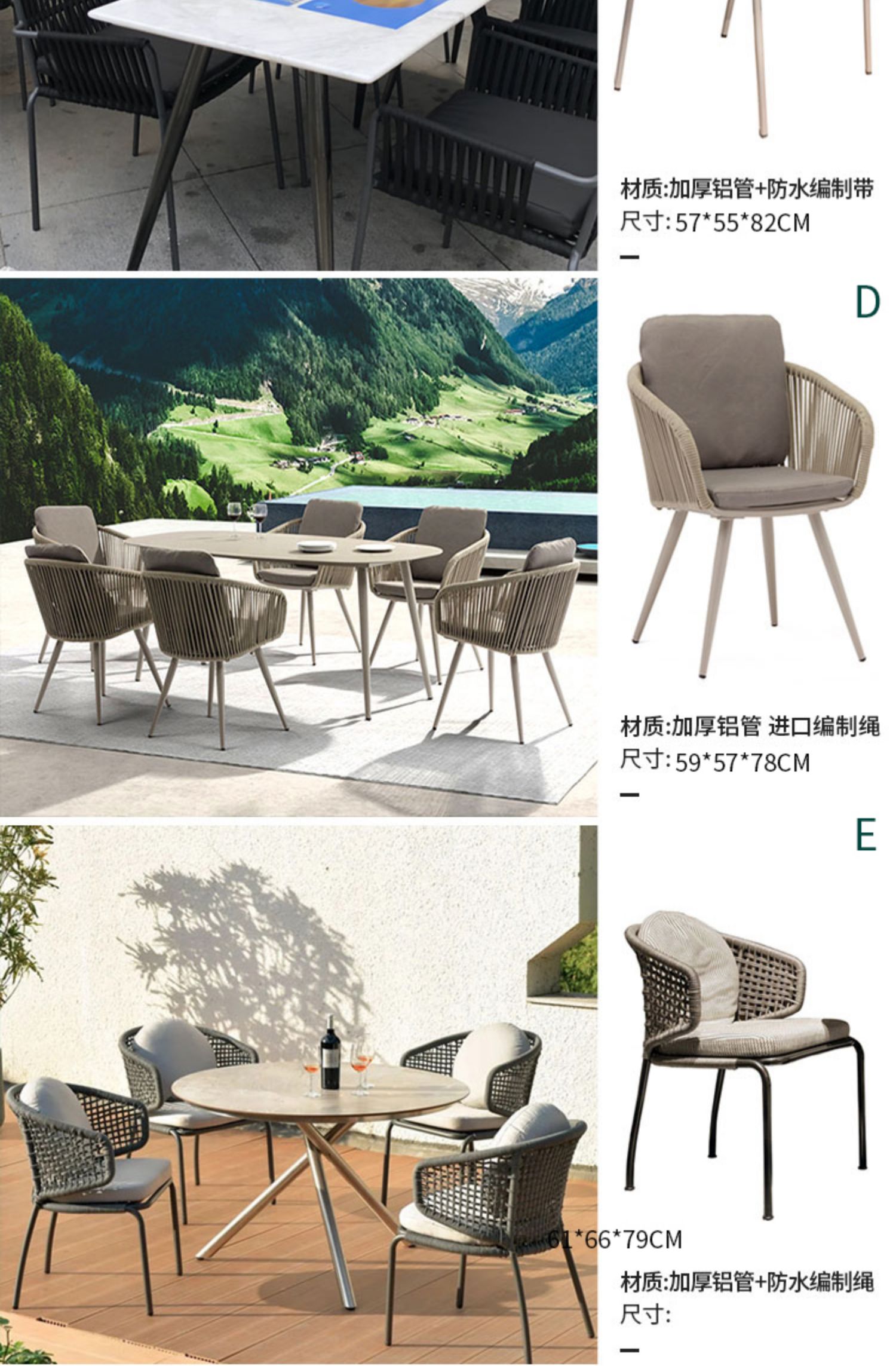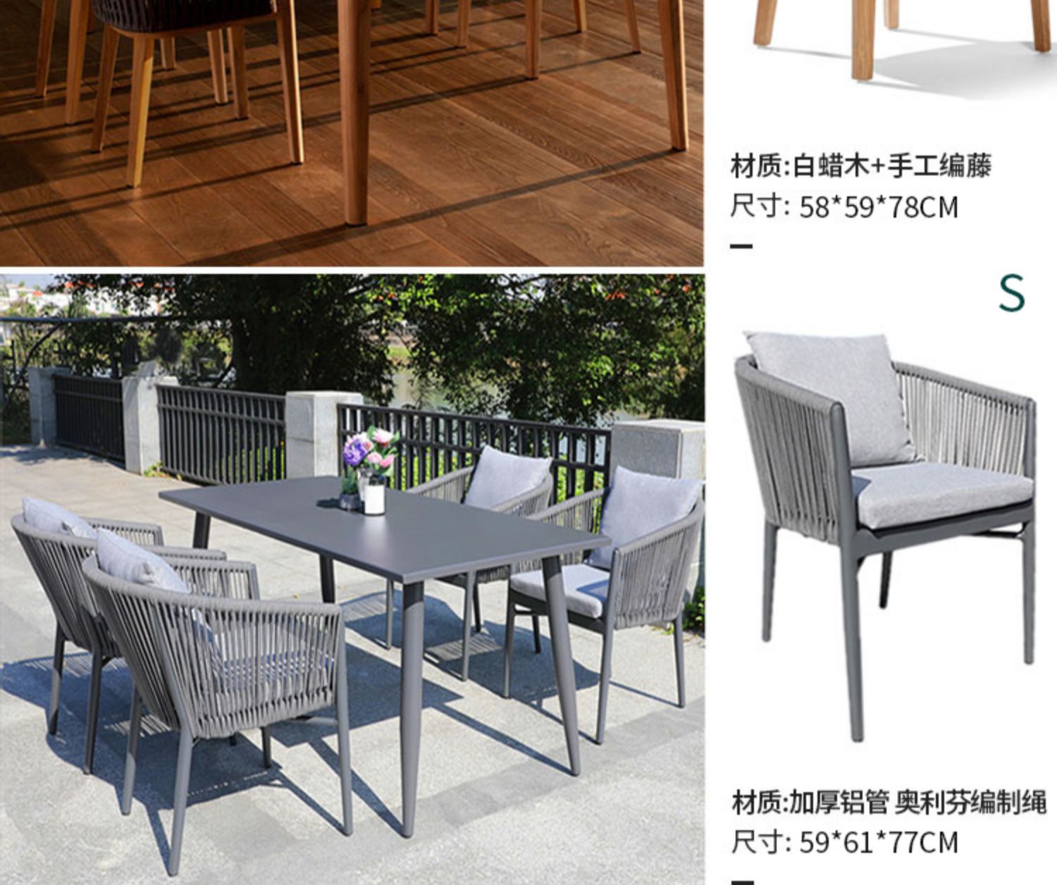 북유럽 야외 등나무 의자 테이블 및 의자 식탁 및 의자 테라스 커피 테이블 3 피스 코트야드 야외 발코니 조합 호텔스토어 가기