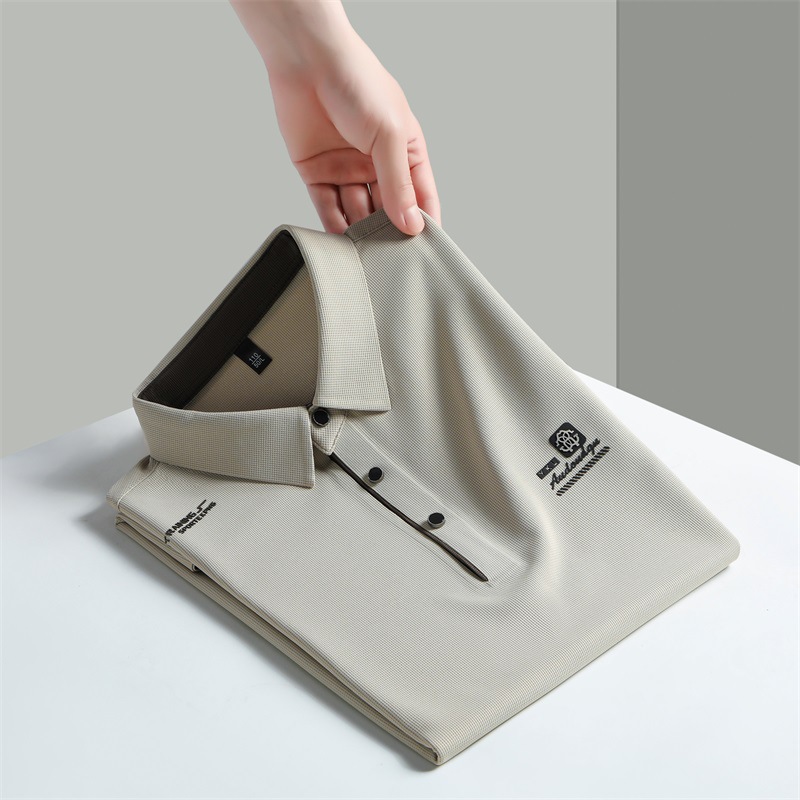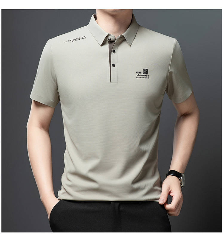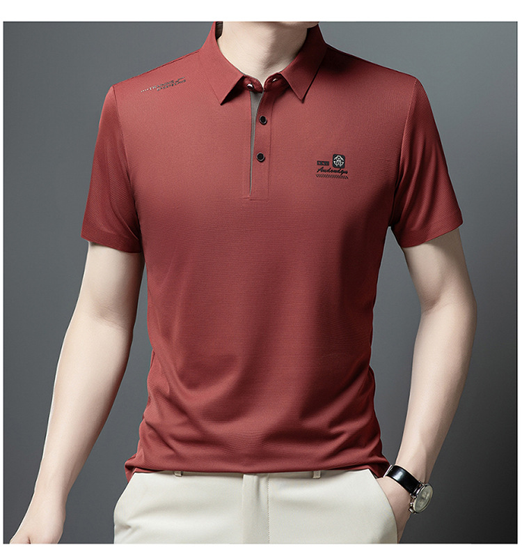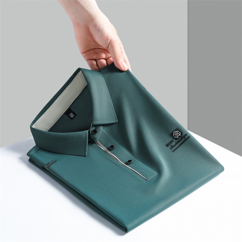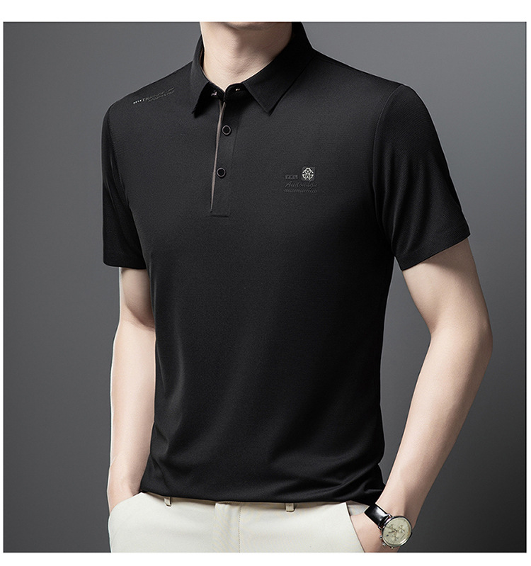 여름 폴로 셔츠 남자 뽕나무 실크 랩 반팔 느슨한 캐주얼 중년 비즈니스 Bottoming 티셔츠 아빠 유행스토어 가기